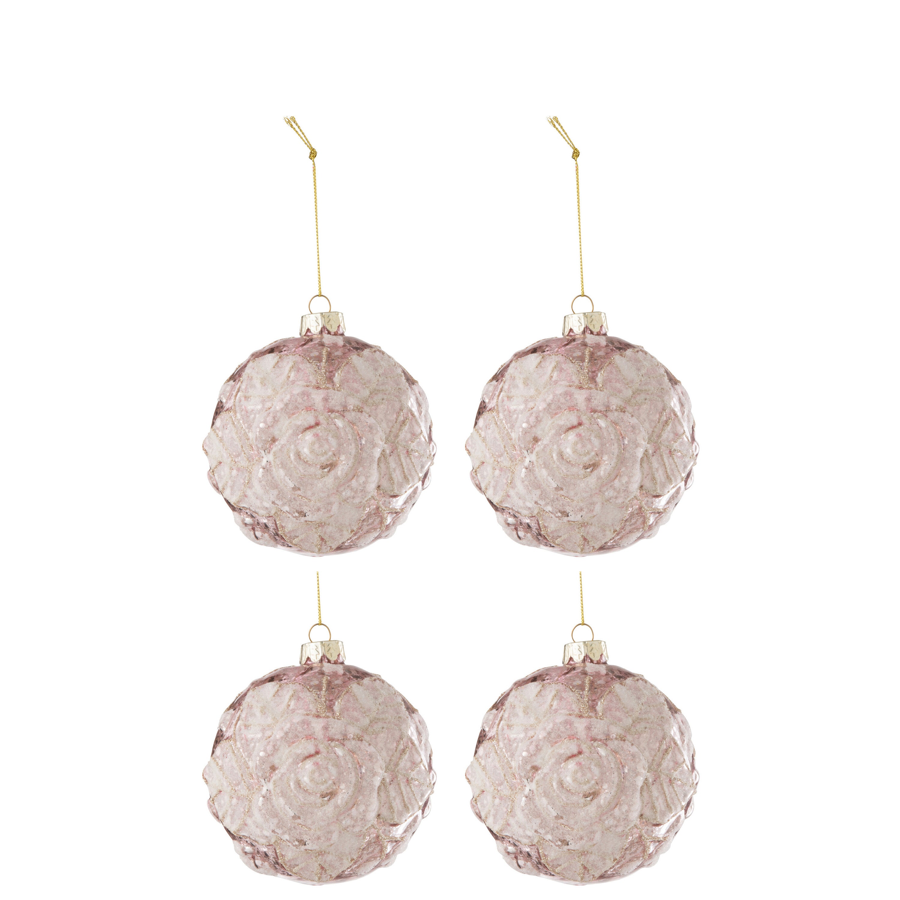 J-Line kerstbal Motief Roos Pailletten - glas - lichtroze - large - doos van 4