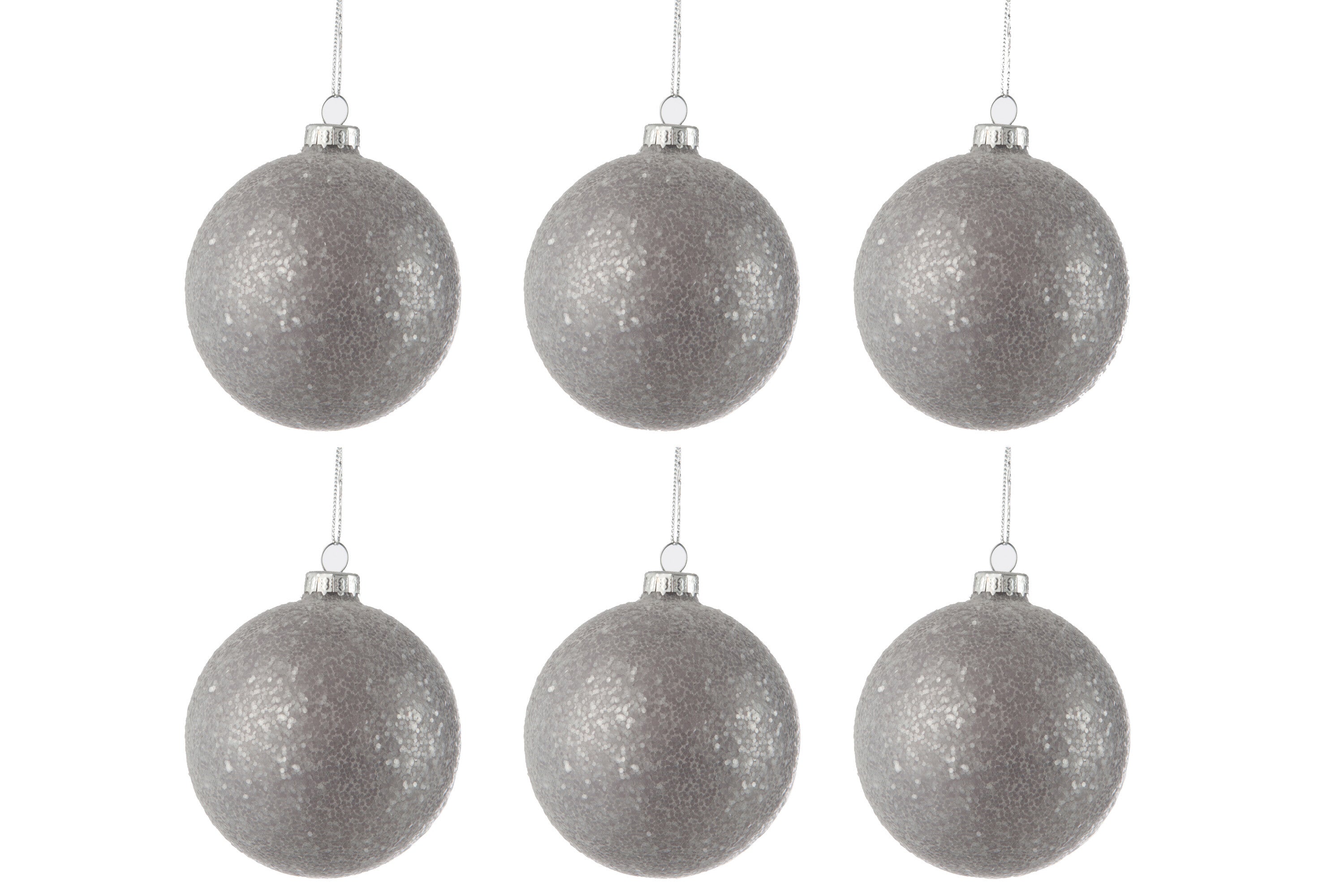 J-Line kerstbal Pailletten - glas - grijs - doos van 6