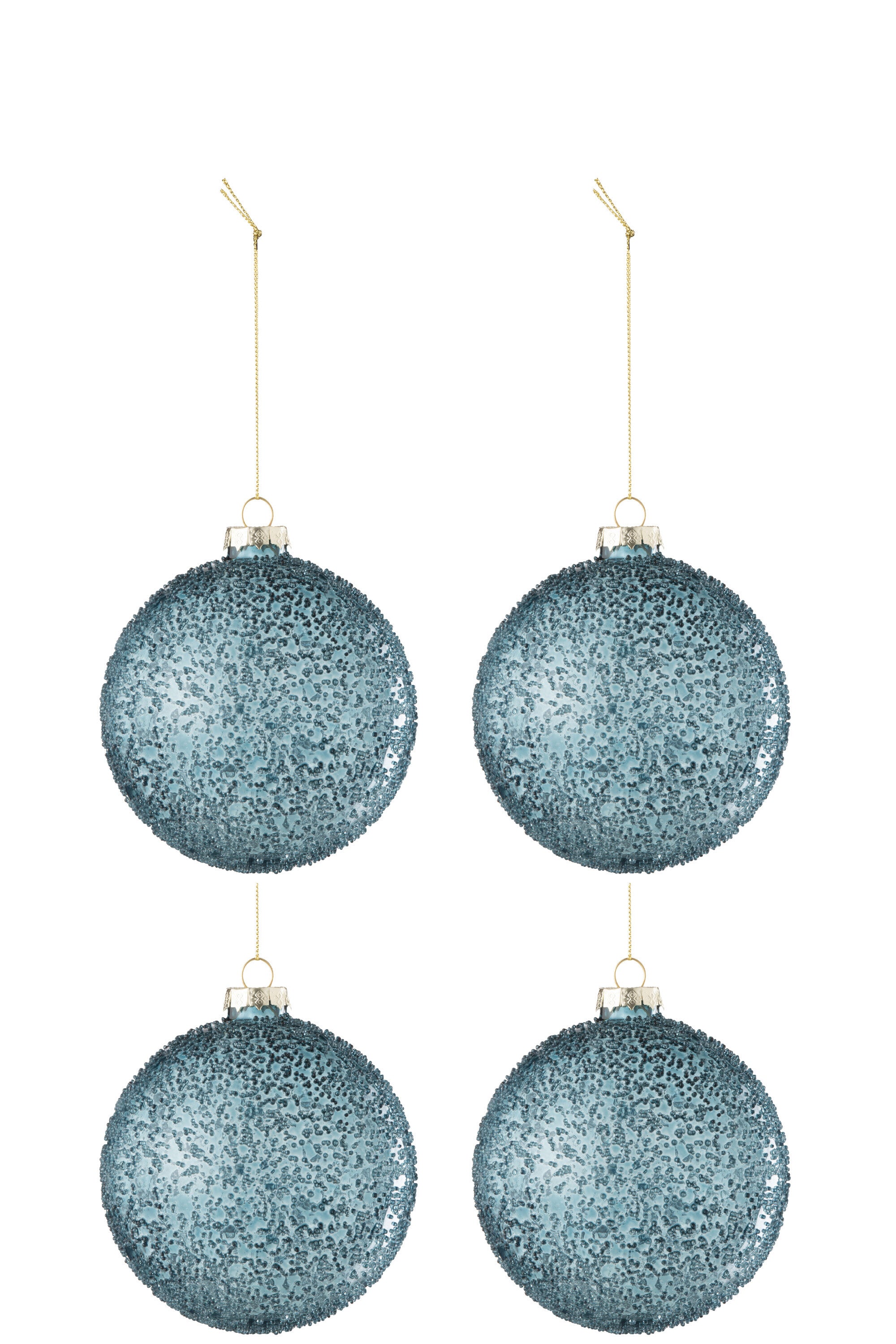J-Line kerstbal Parels - glas - blauw - small - doos van 4
