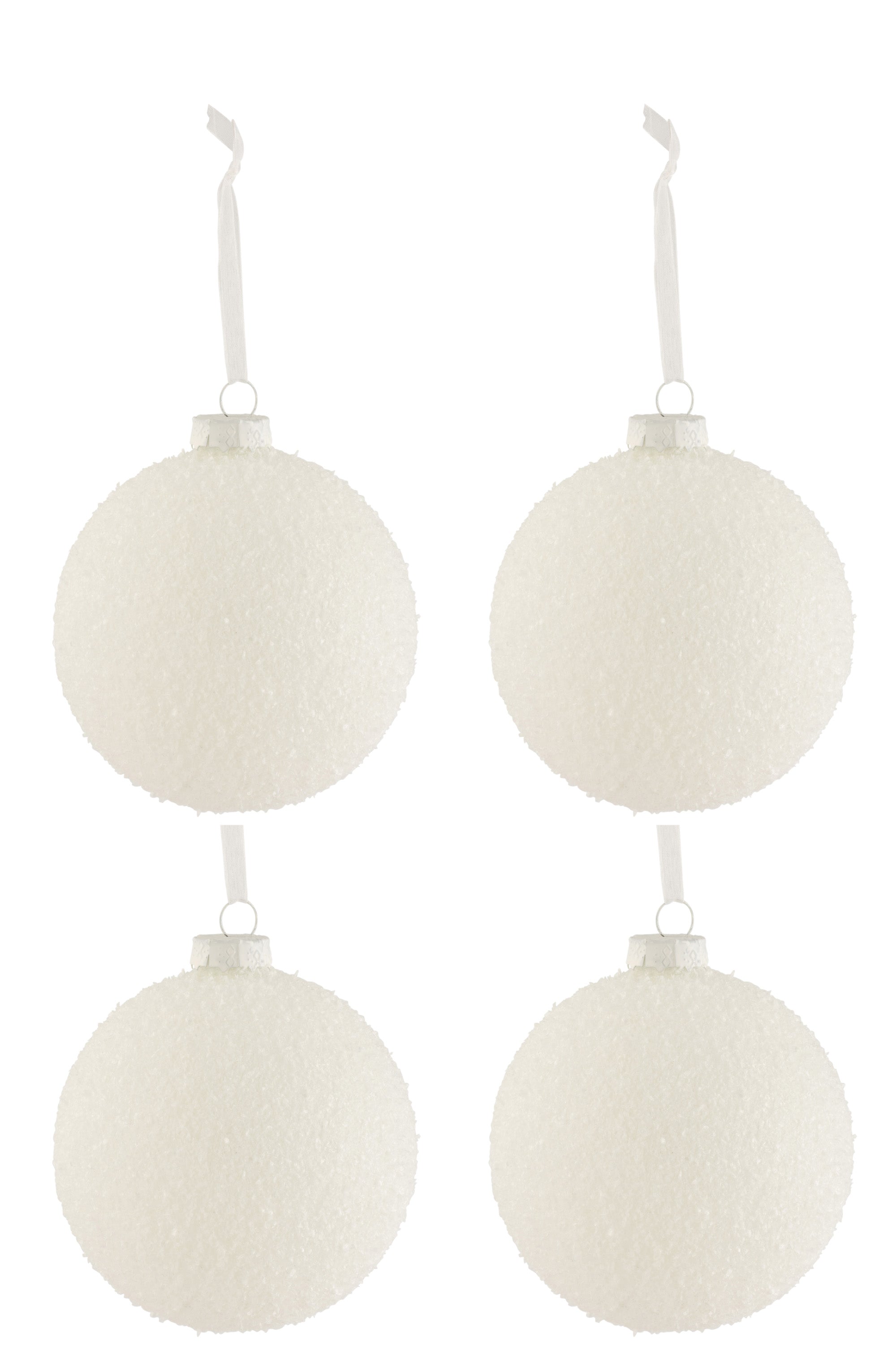 J-Line Kerstballen Besneeuwd Wit Large Set van 4