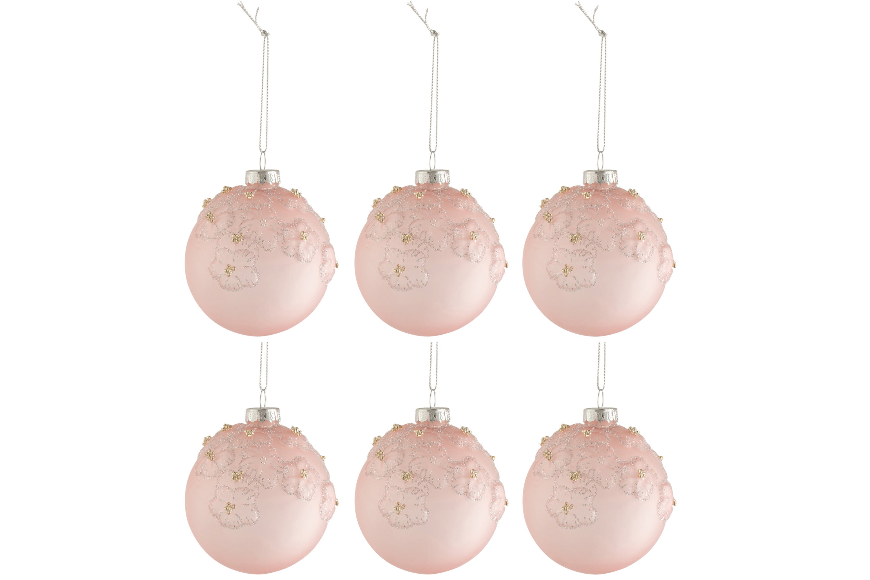 J-Line Kerstballen Bloemen Roze Small Set van 6