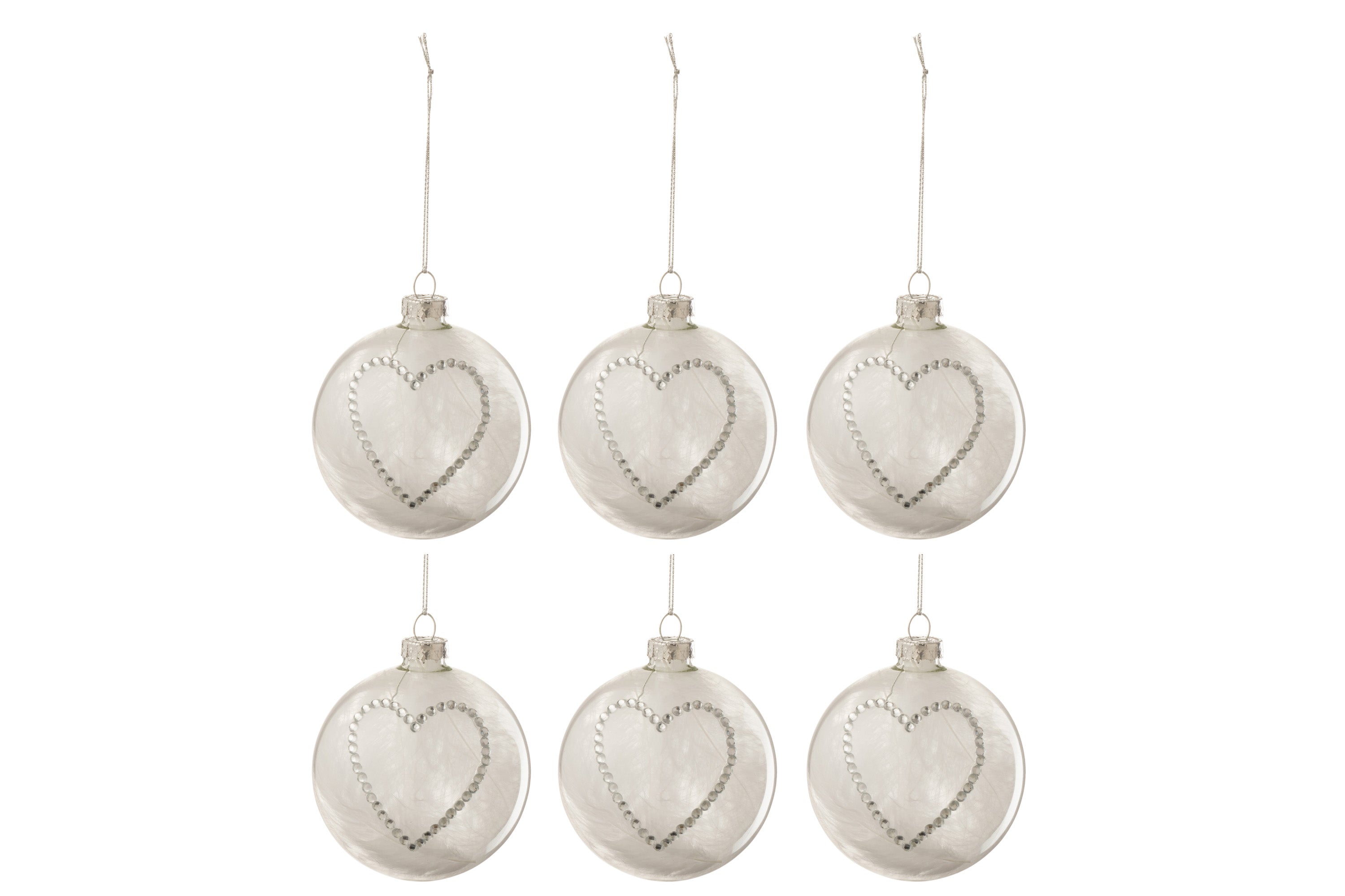 J-Line Kerstballen Hart Strass Zilver Small Set van 6