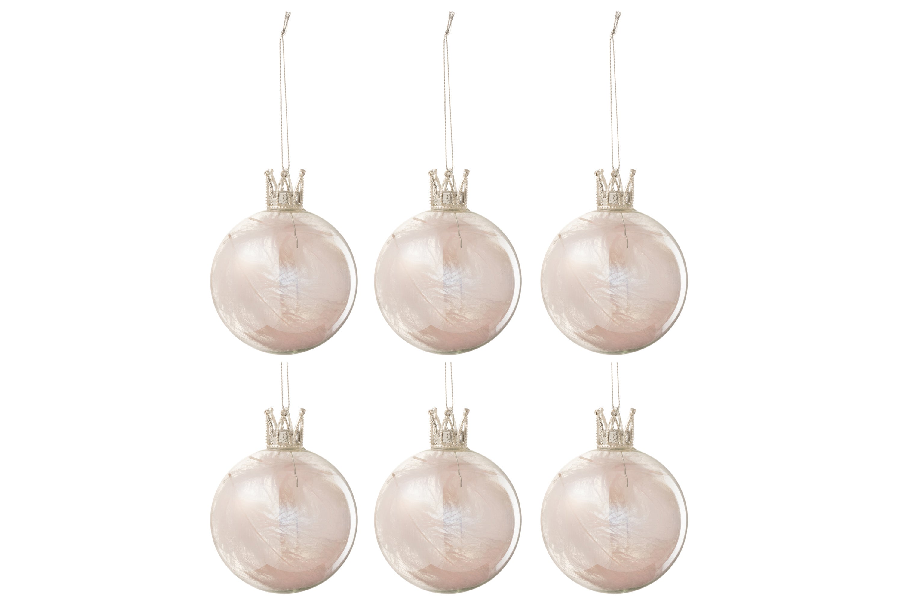 J-Line Kerstballen Kroon Pluim Roze Small Set van 6