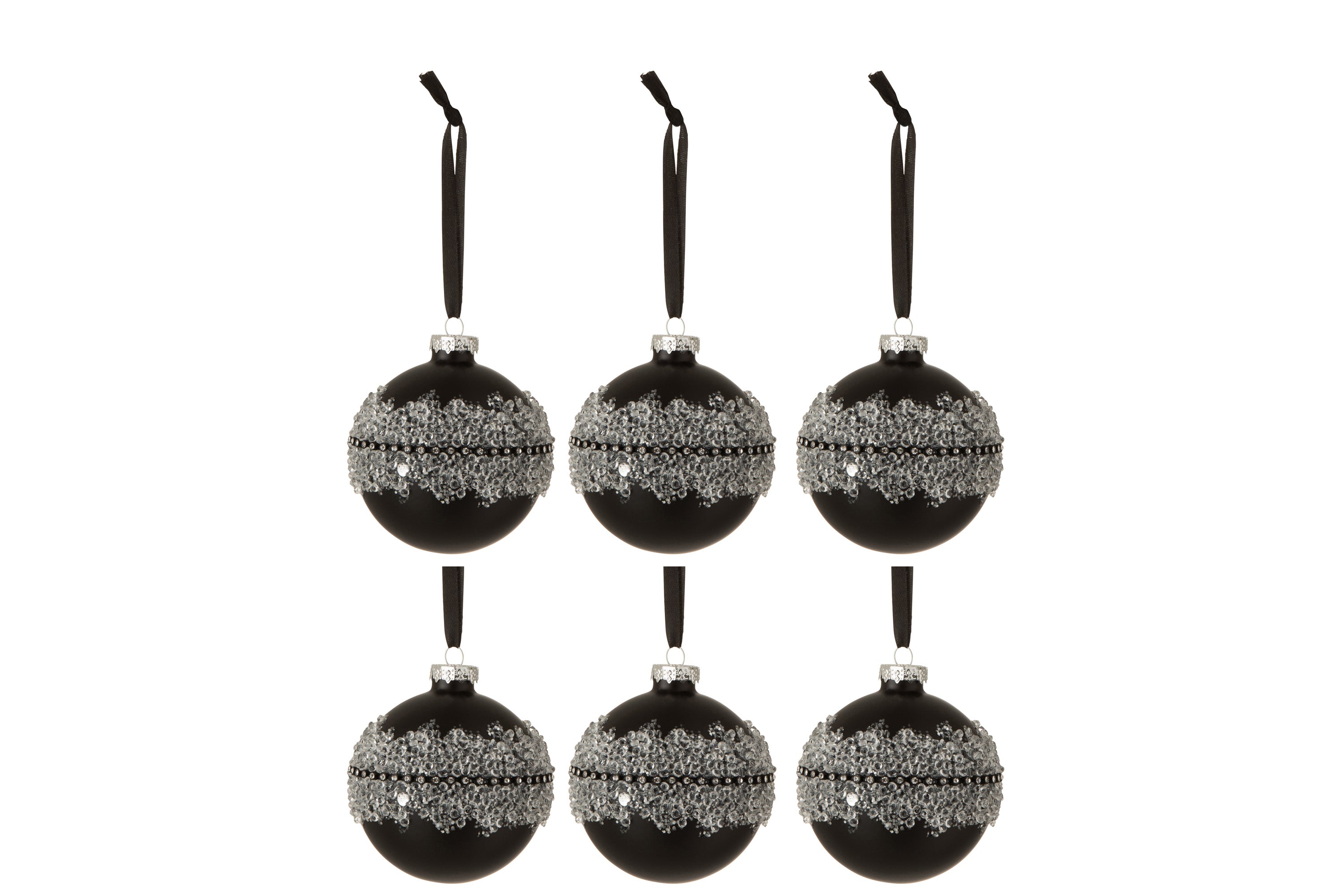 J-Line Kerstballen Zwart Suiker Midden Set van 6