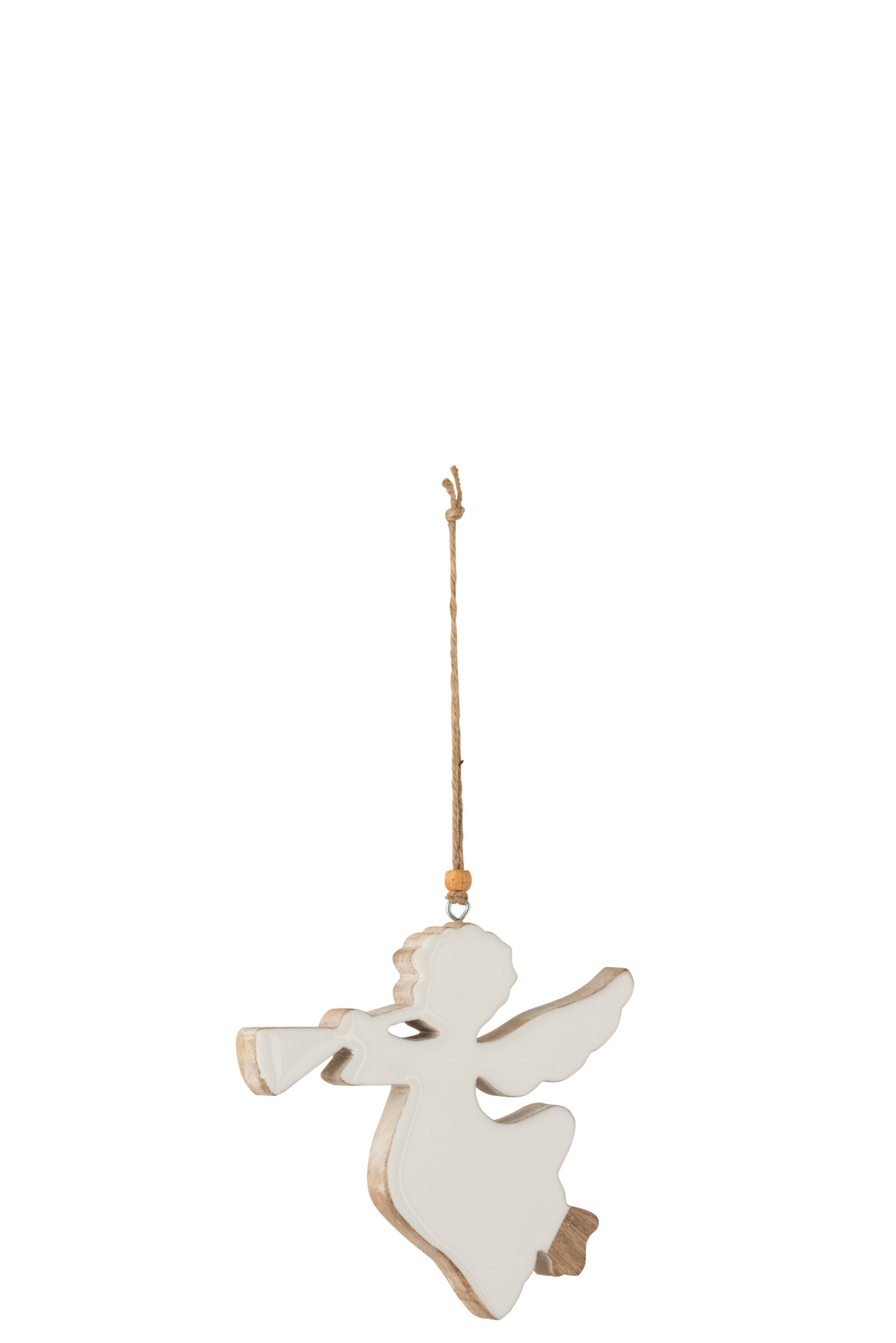 J-Line kersthanger Engel Trompet - hout - wit - medium - 4 stuks