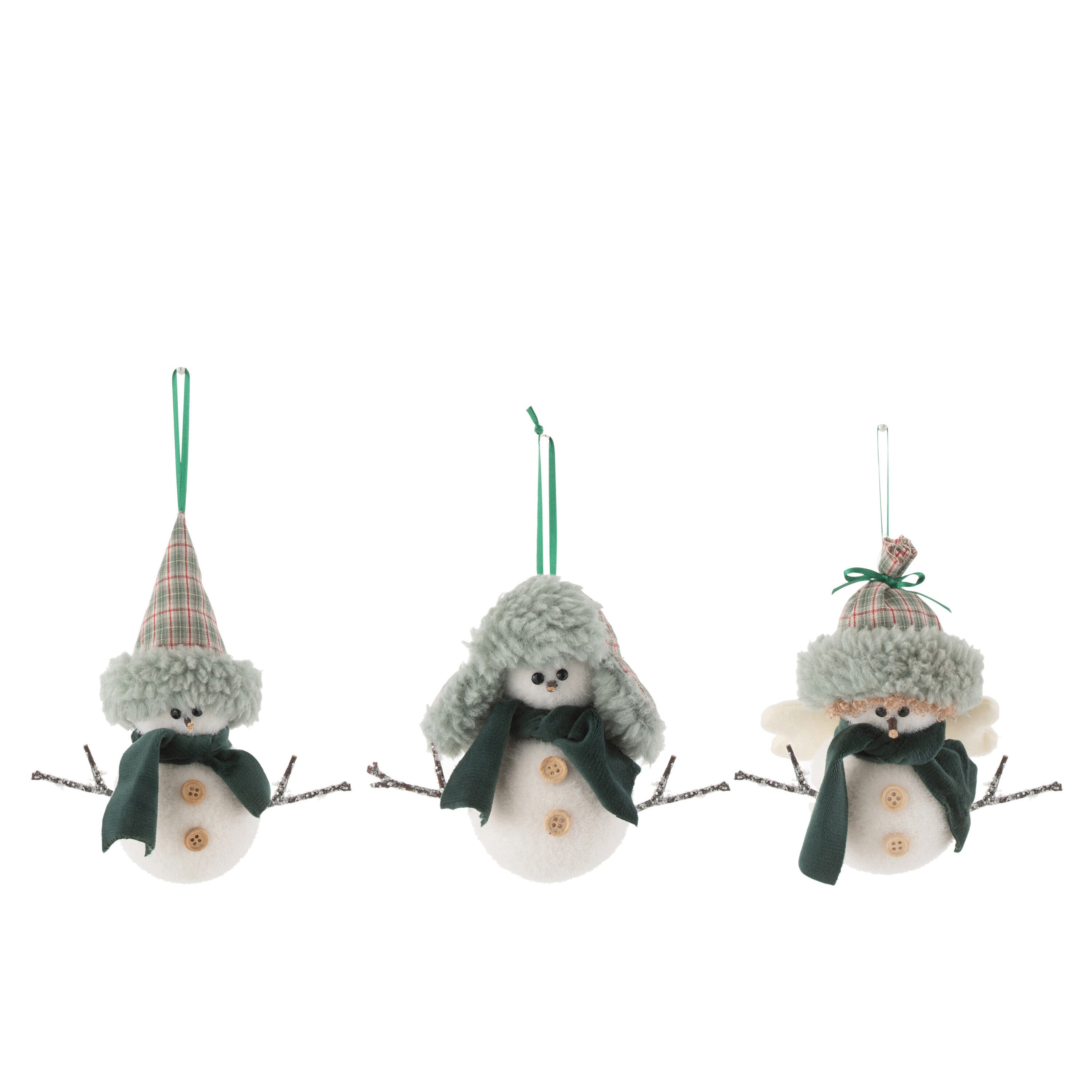 J-Line kersthanger Kerstman + Muts - textiel - wit|groen - 3 stuks