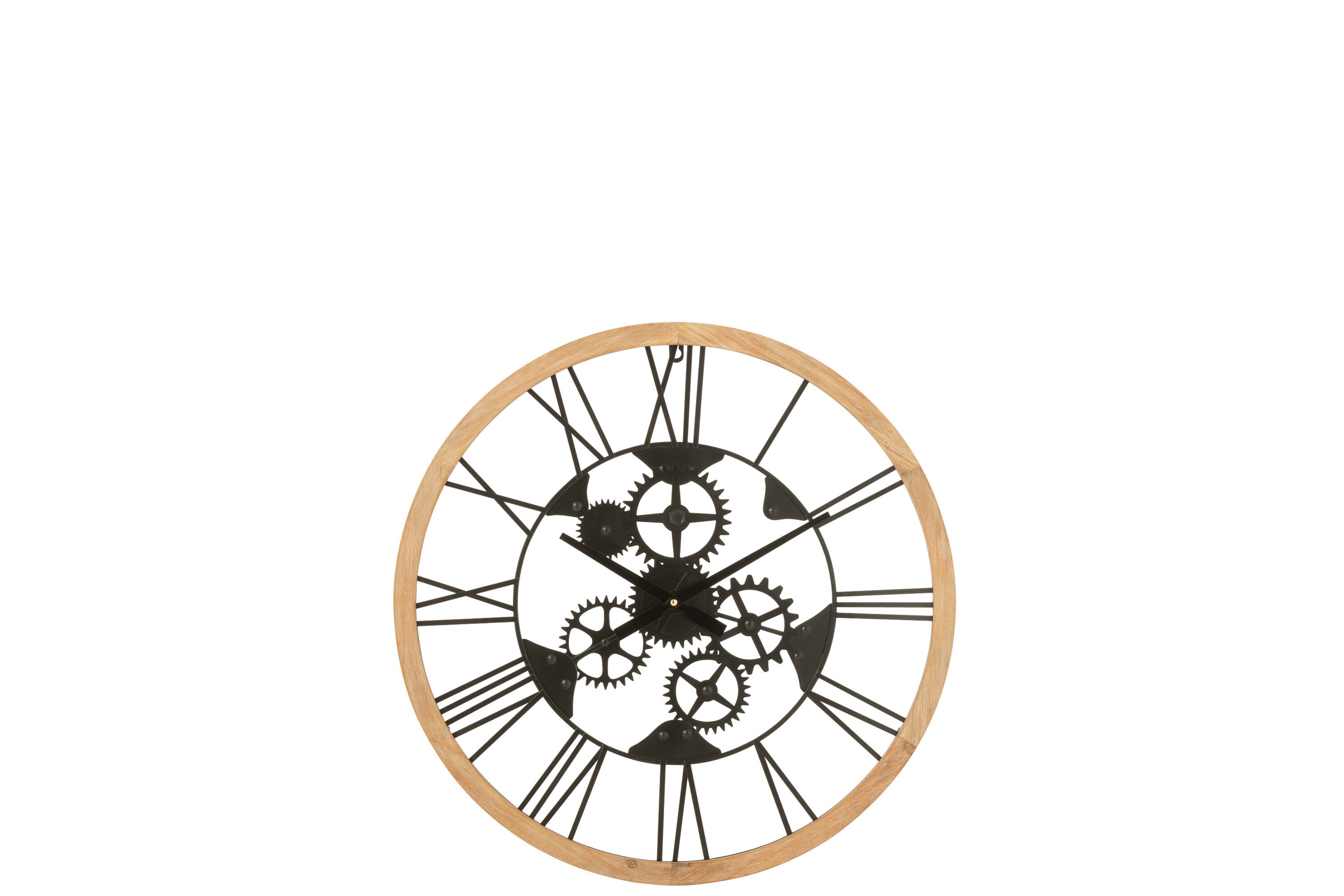 J-line - Klok Romeinse Cijfers Wielen Metaal Zwart Small - 60x4.5x60cm