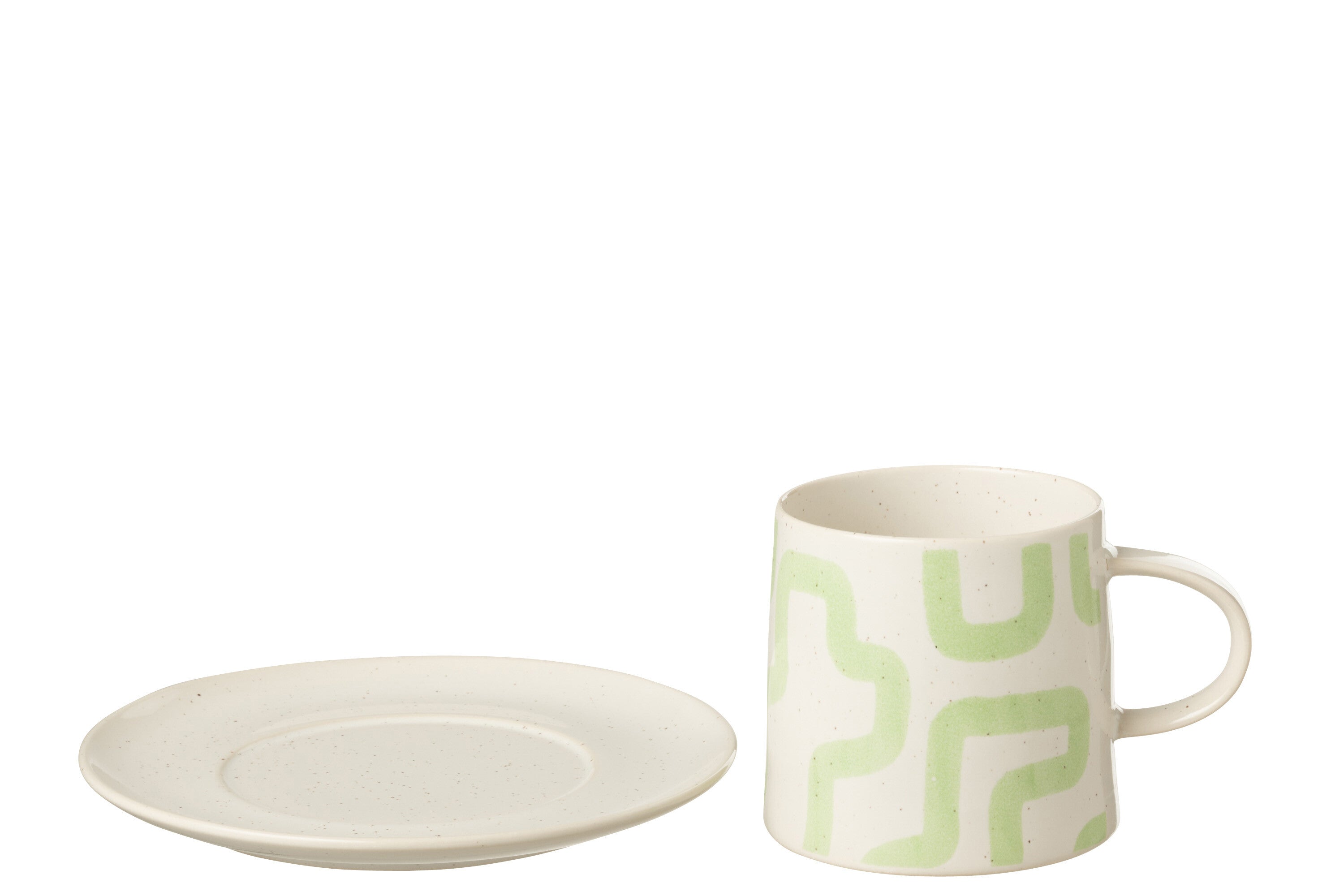 J-Line kop + schoteltje Vorm - porselein - groen - 4 stuks