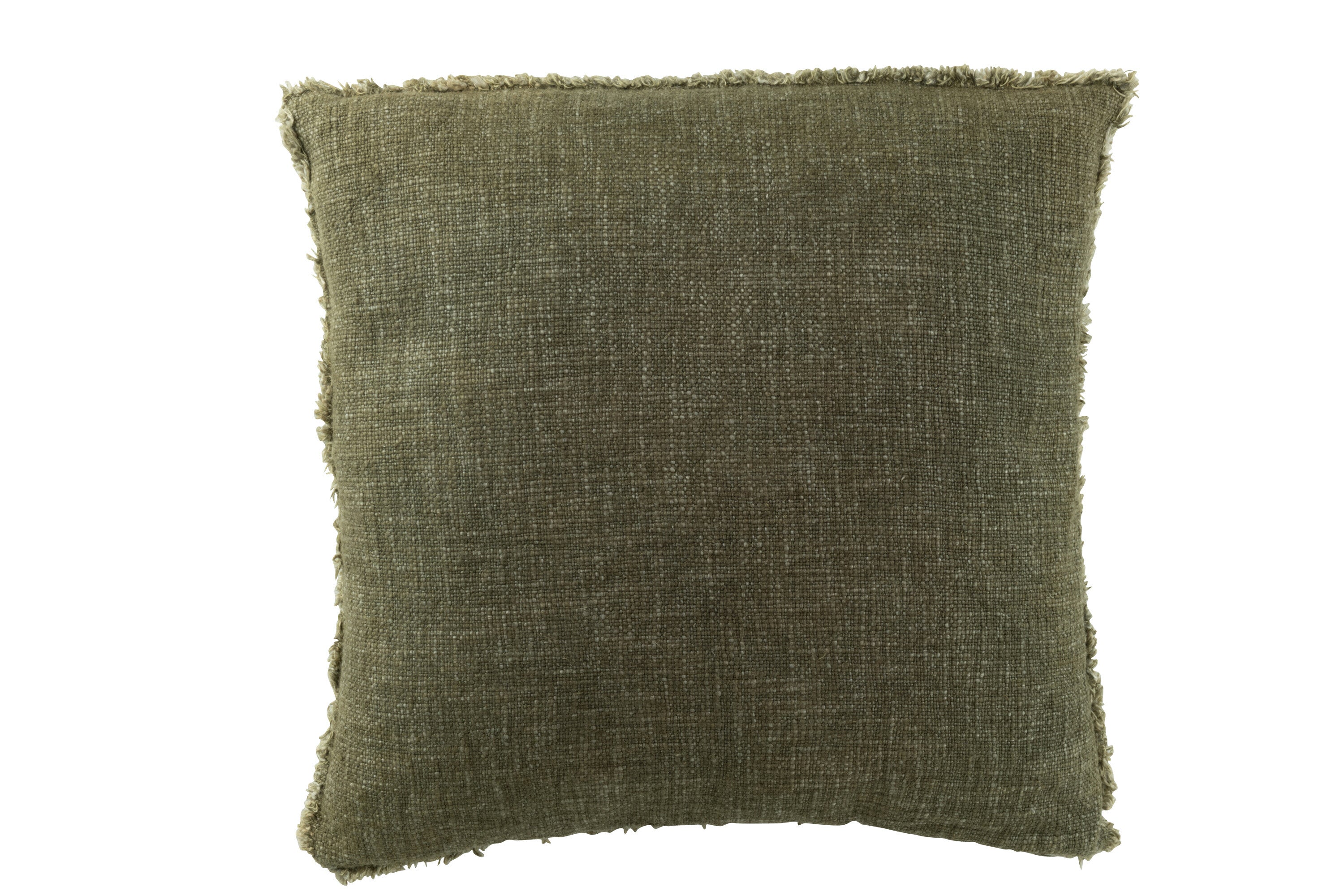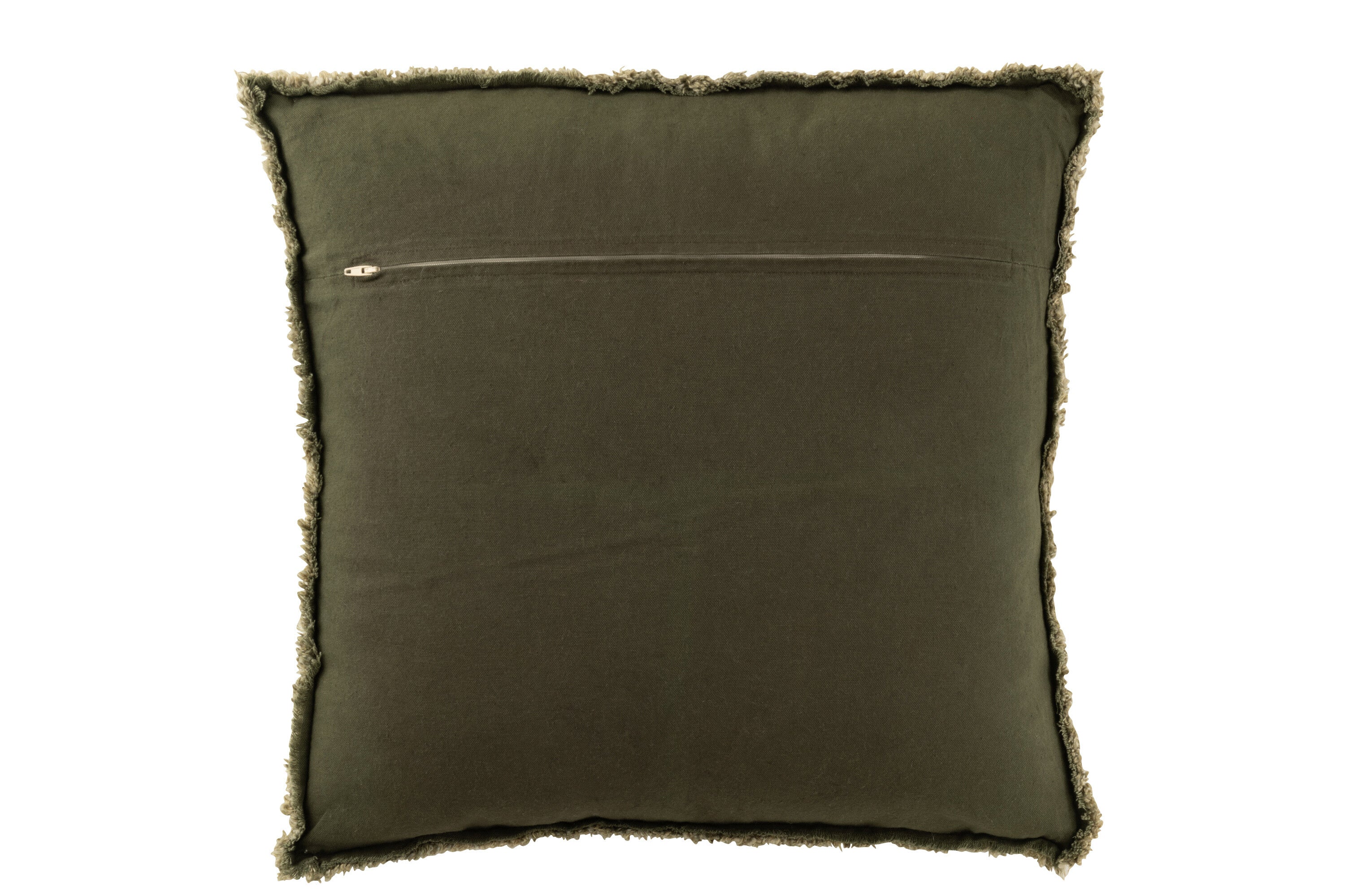 J-Line kussen Gerafelde Randen - polyester|katoen - donkergroen