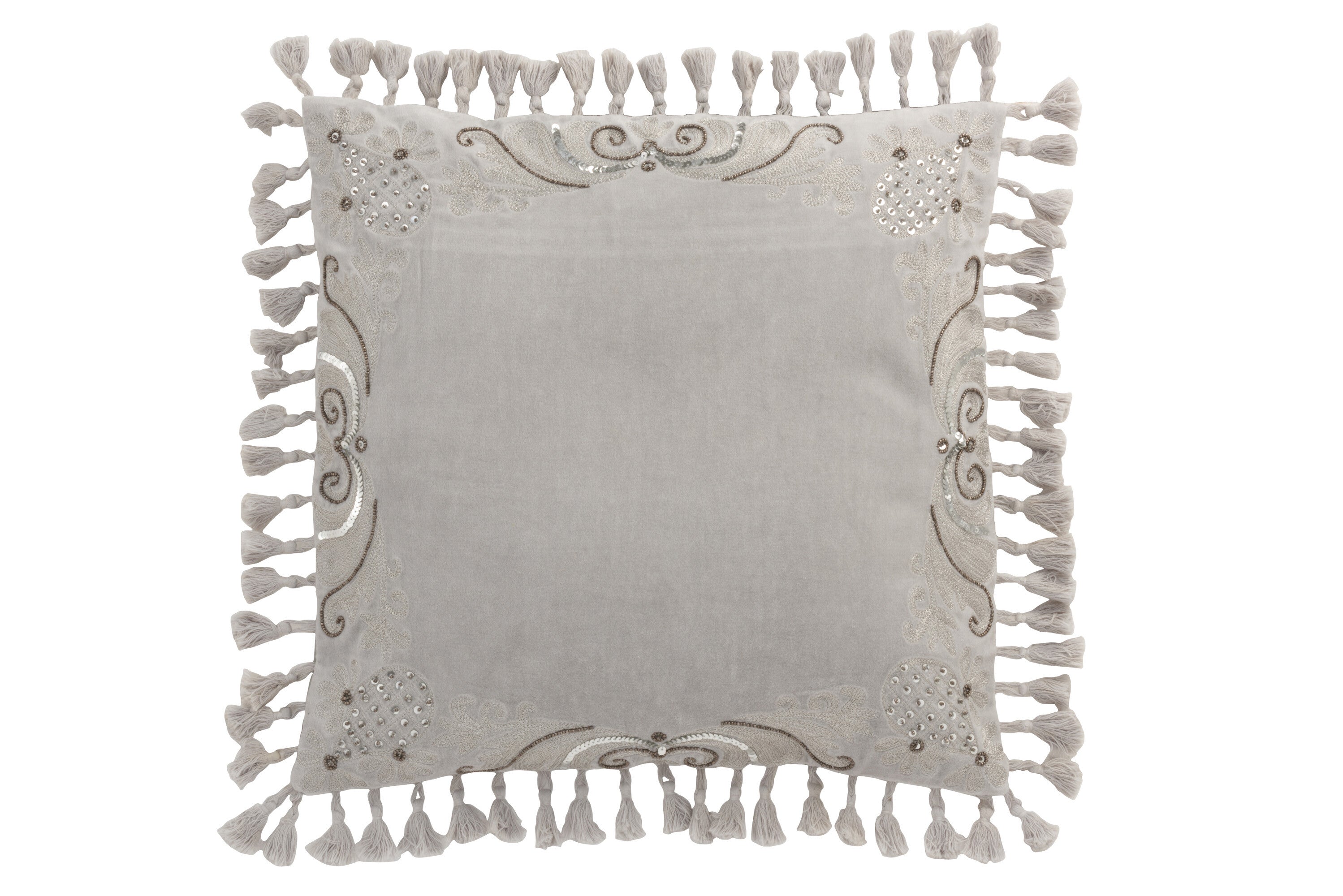KUSSEN MAROKKAANSE RANDEN MET KWASTEN VELVET GRIJS is gemaakt en ontworpen door het Belgische bedrijf J-Line.