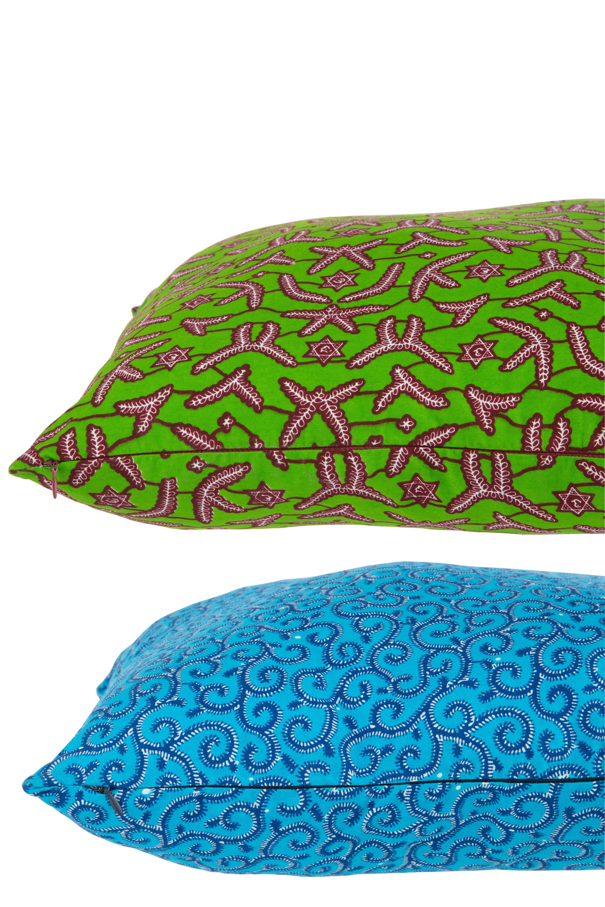 J-Line kussen Patroon Stof - polyester - groen|blauw - 2 stuks