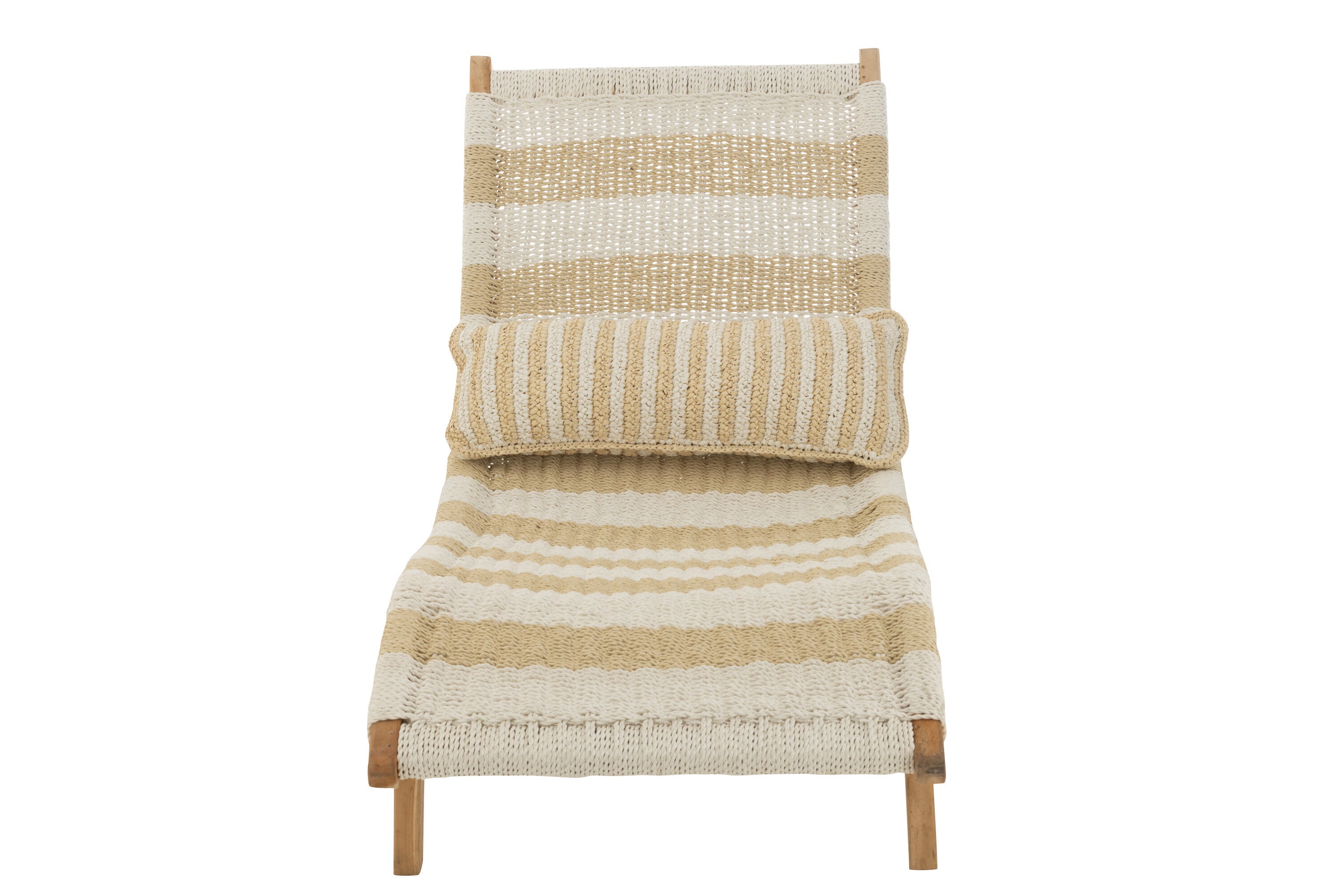 J-Line ligzetel + kussen Strepen Geweven - teak - wit|naturel