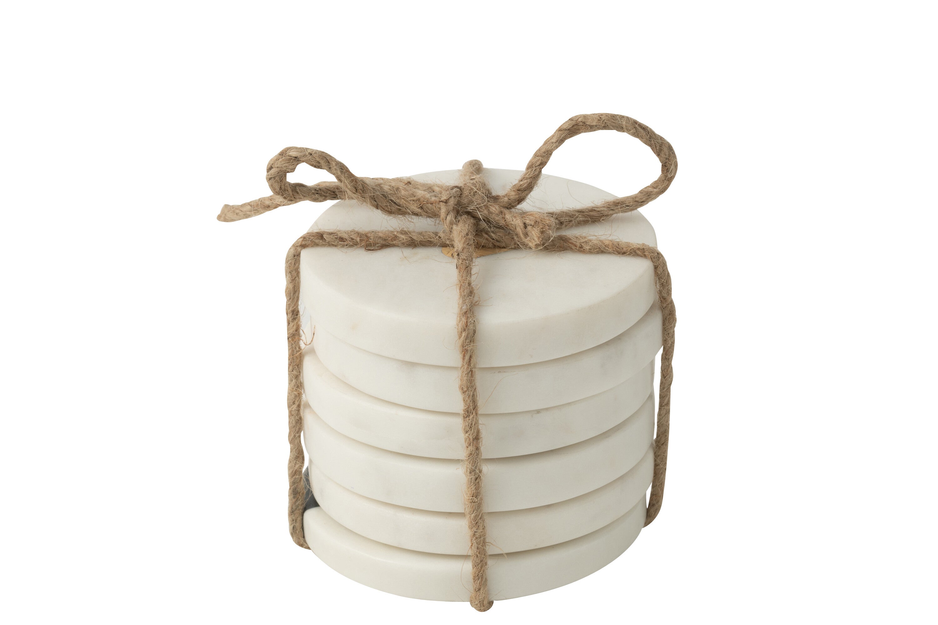 J-Line onderzetter Marmer - steen - wit - set van 6
