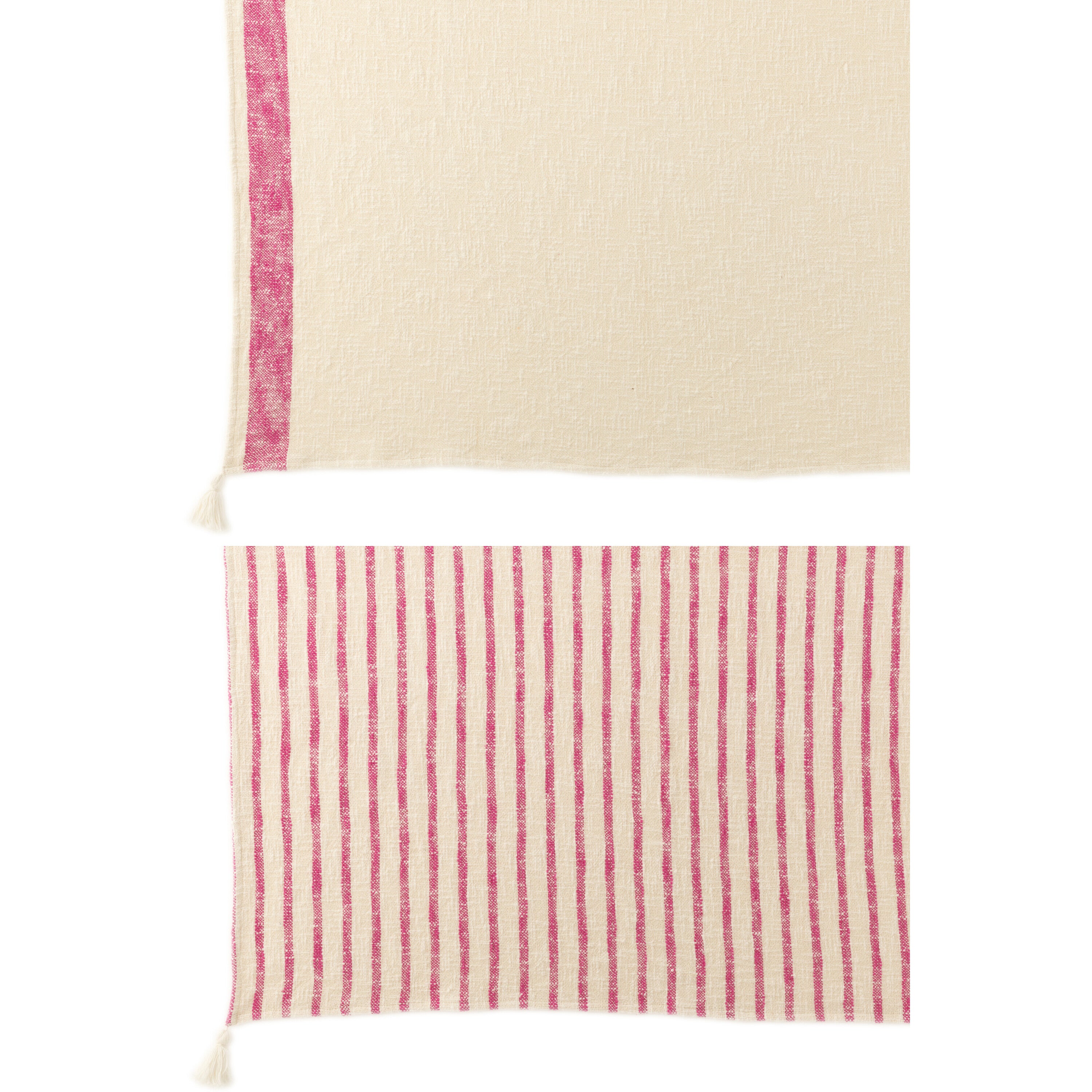 J-Line plaid Strepen + Kwasten - katoen - wit|roze - 2 stuks