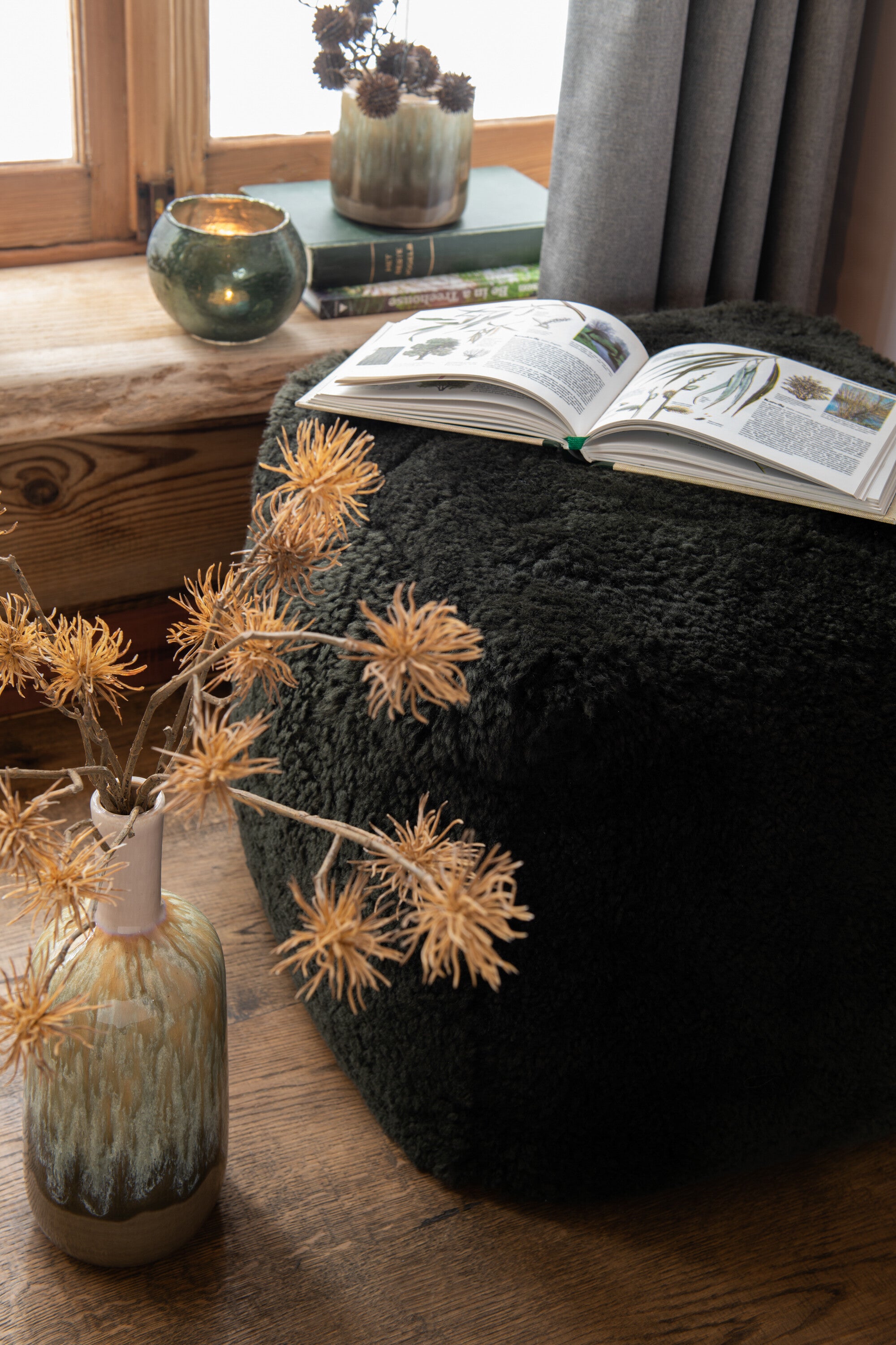 J-Line poef Vierkant Schapenvel - textiel - groen