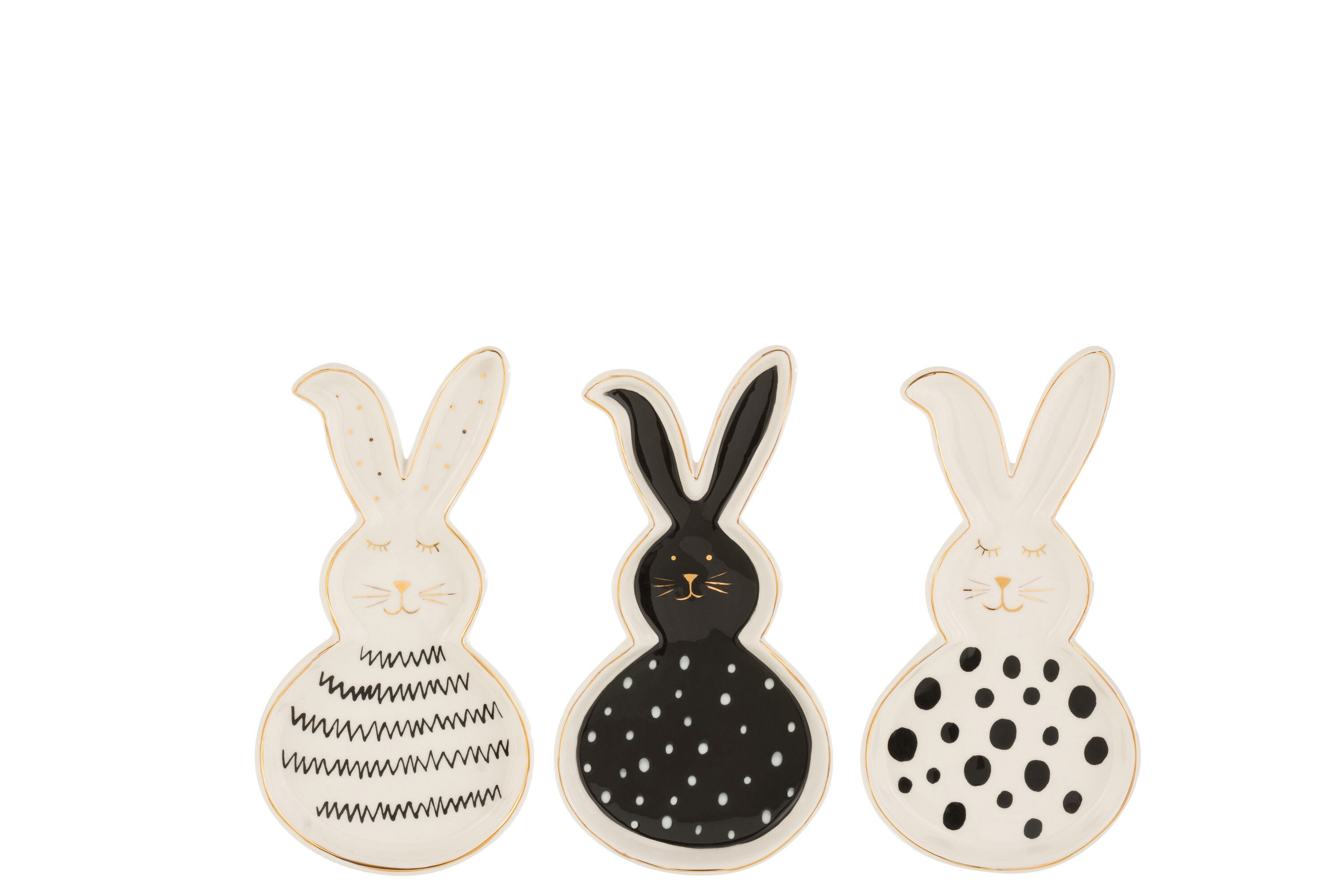 J-Line schaal Konijn - keramiek - zwart|wit|goud - medium -