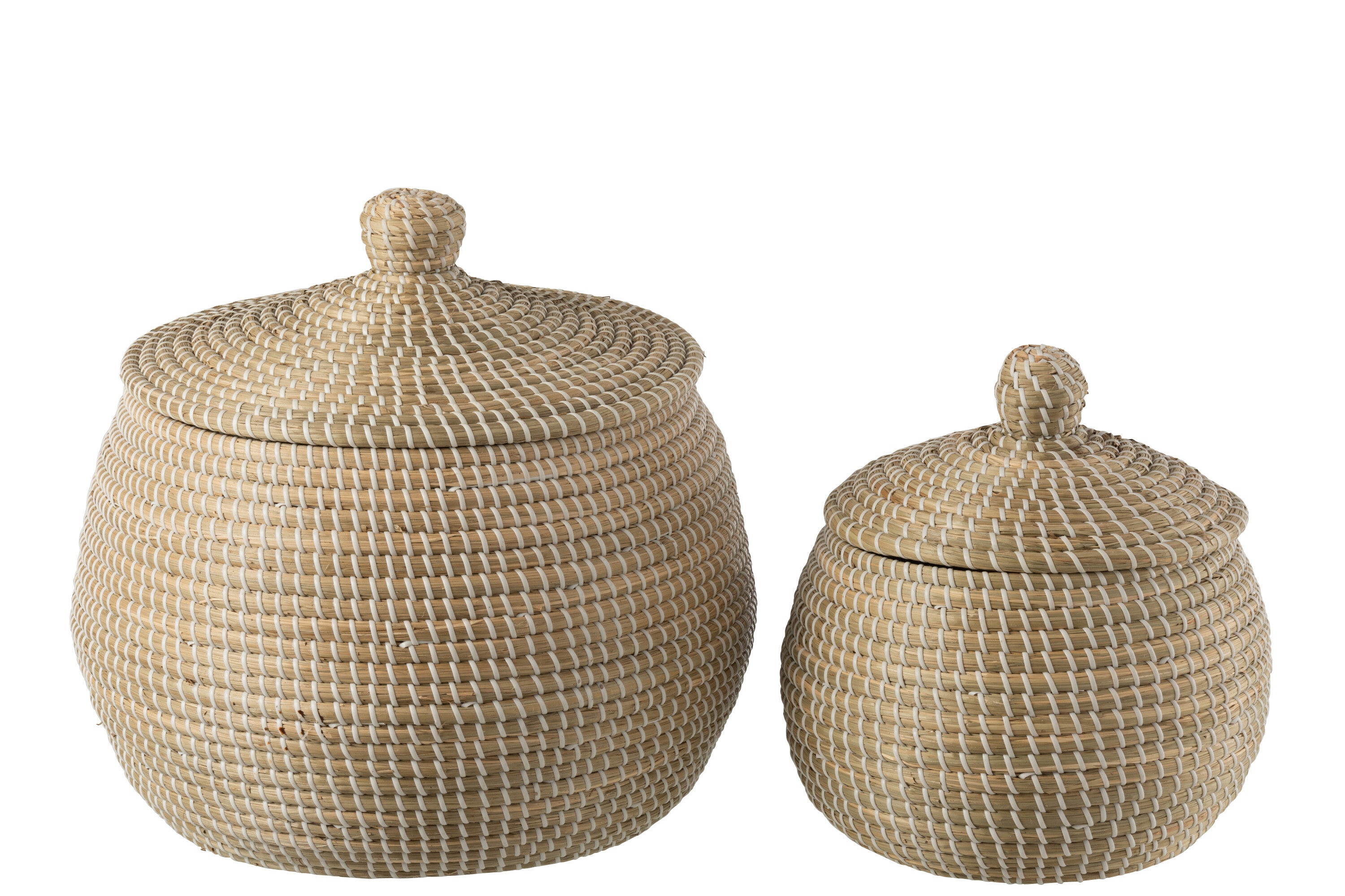 J-Line set van 2 manden + deksel - zeegras - naturel|wit