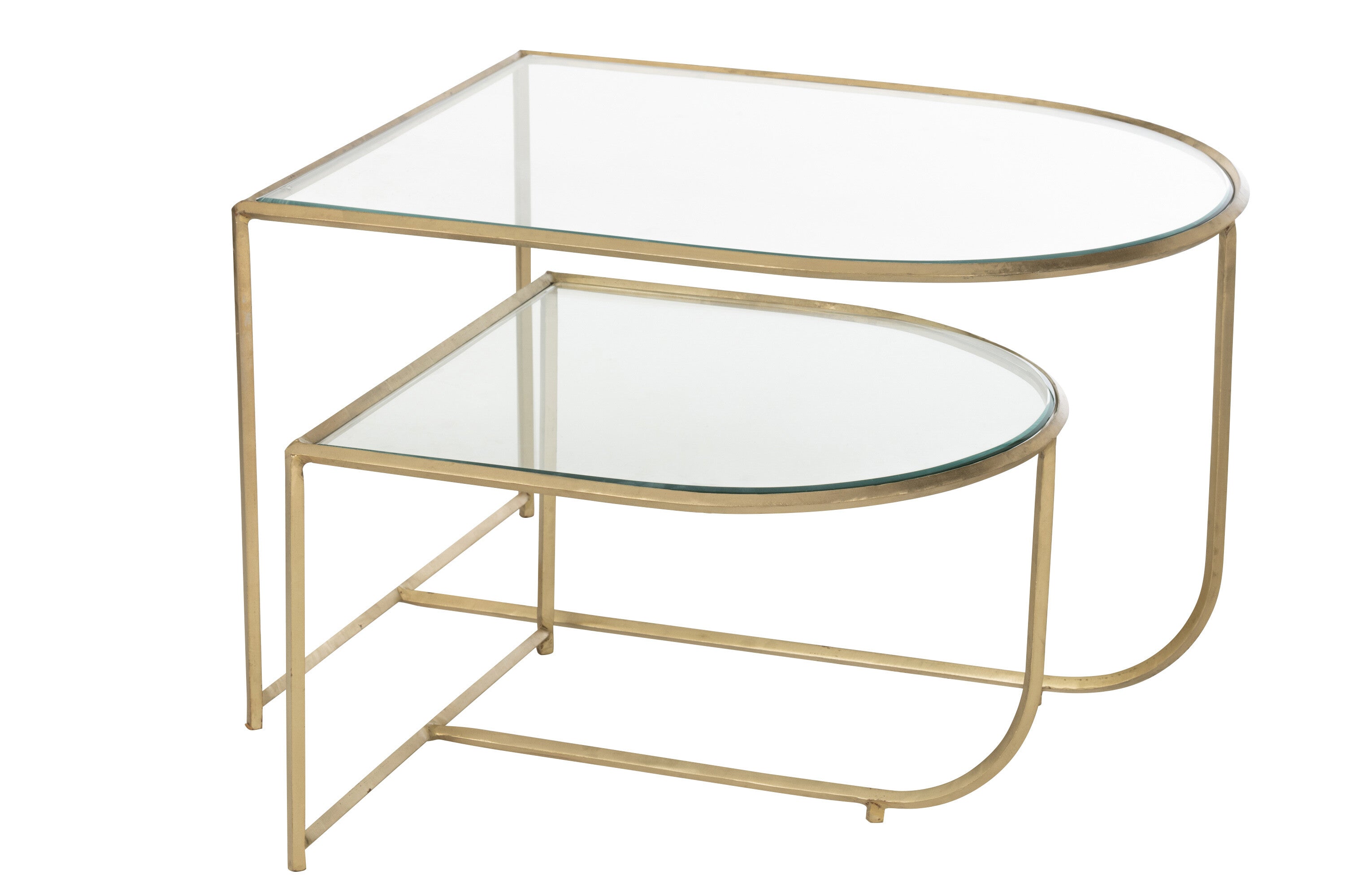 J-line - Set Van 2 Tafels Porte Metaal|glas Goud - 76x62x35cm