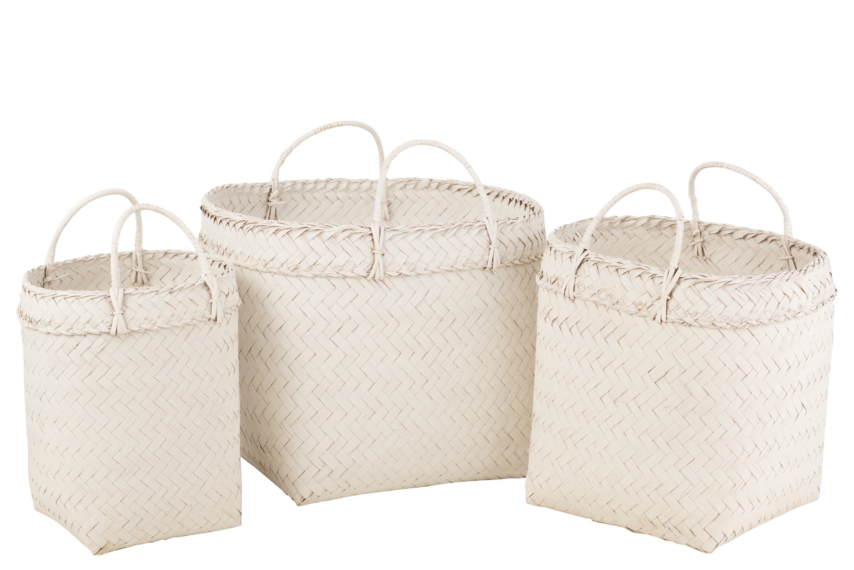 J-Line - Set Van 3 Manden Vierkant Rotan Wit - 48x48x54cm