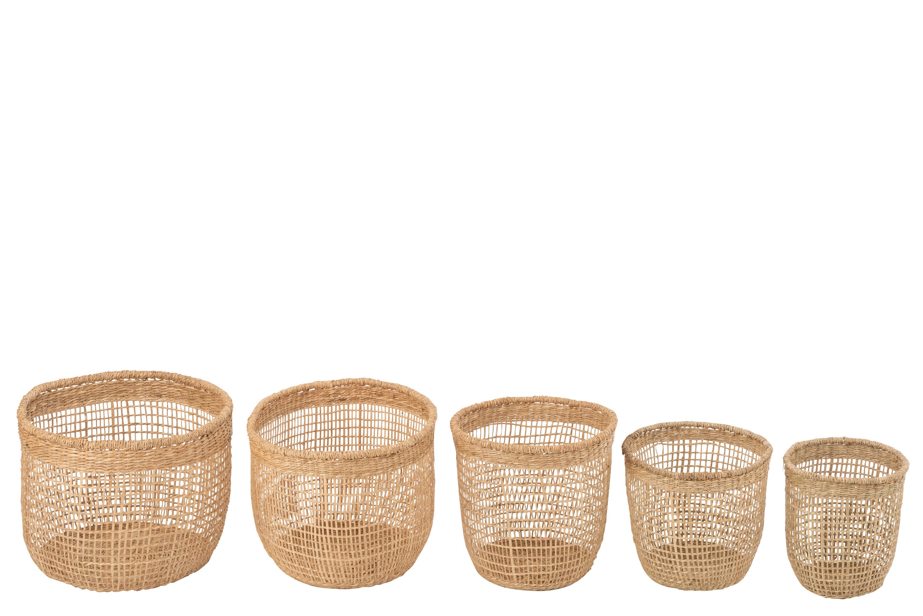 J-Line - Set Van 5 Manden Oasis Zeegras Licht Naturel - 40x40x32cm