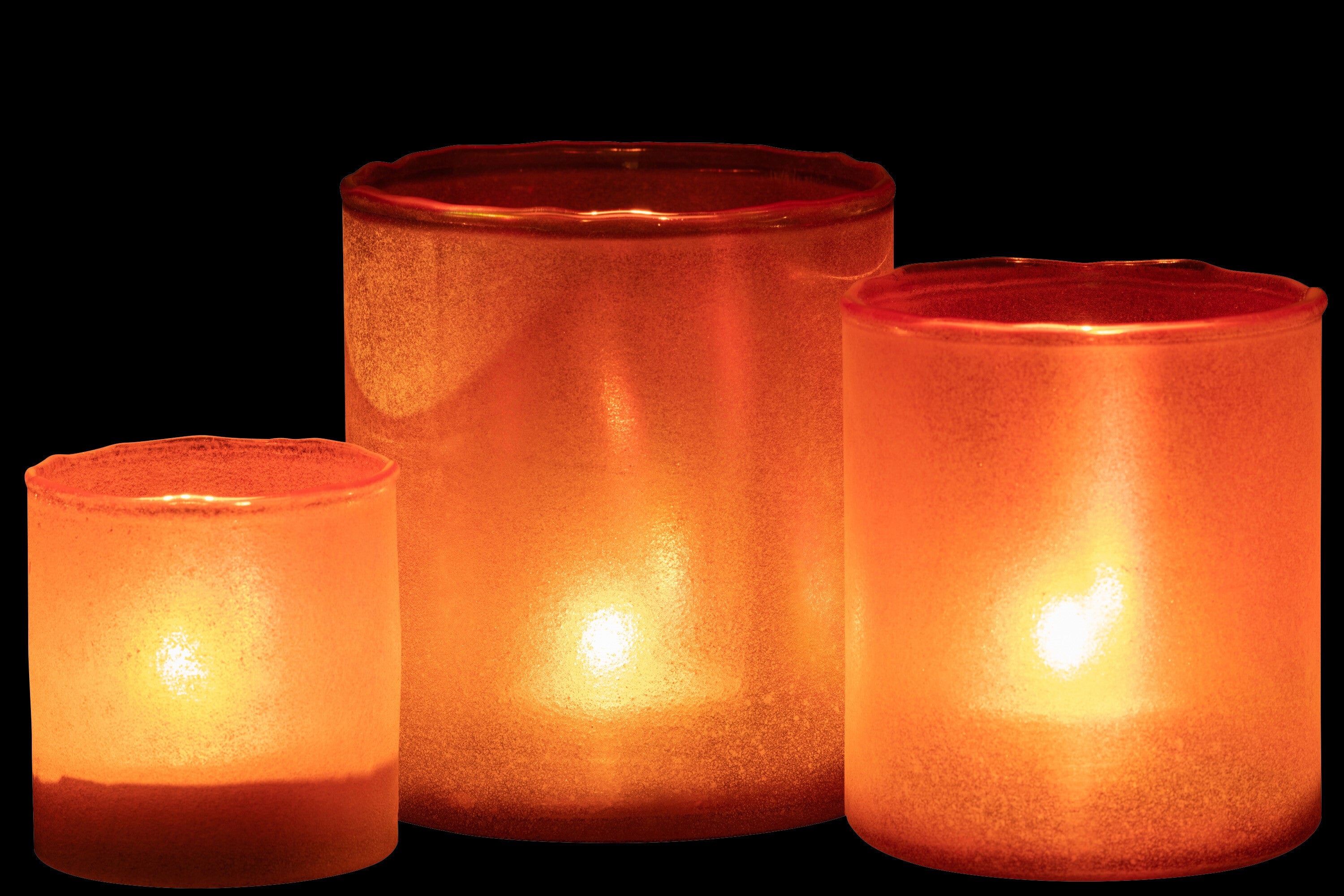 J-line - Set Van Drie Theelichthouder Ruby Glas Oranje - 13x13x15cm