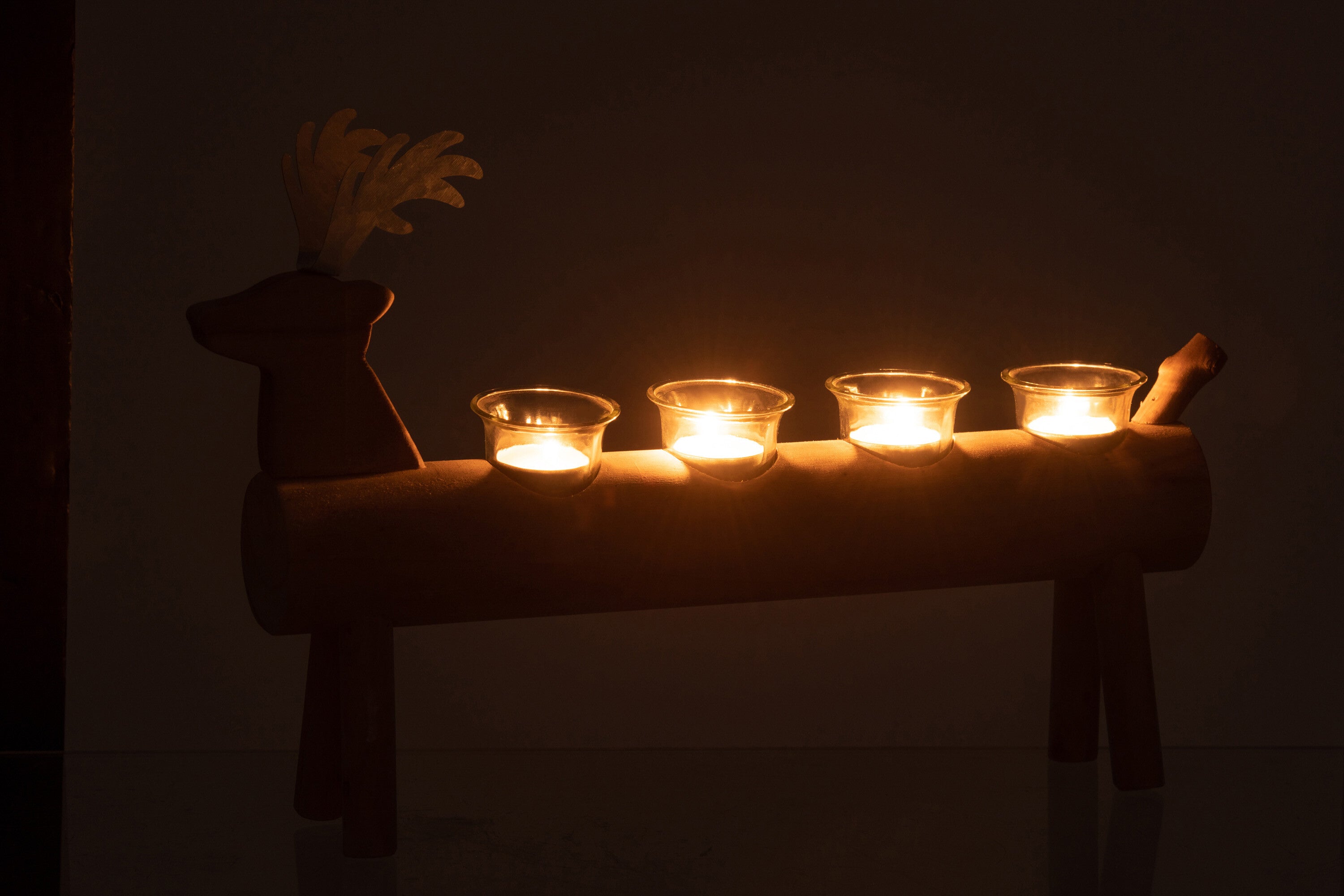 T-LICHTHOUDER HERT 4 HOUDERS HOUT BRUIN is gemaakt en ontworpen door het Belgische bedrijf J-Line.