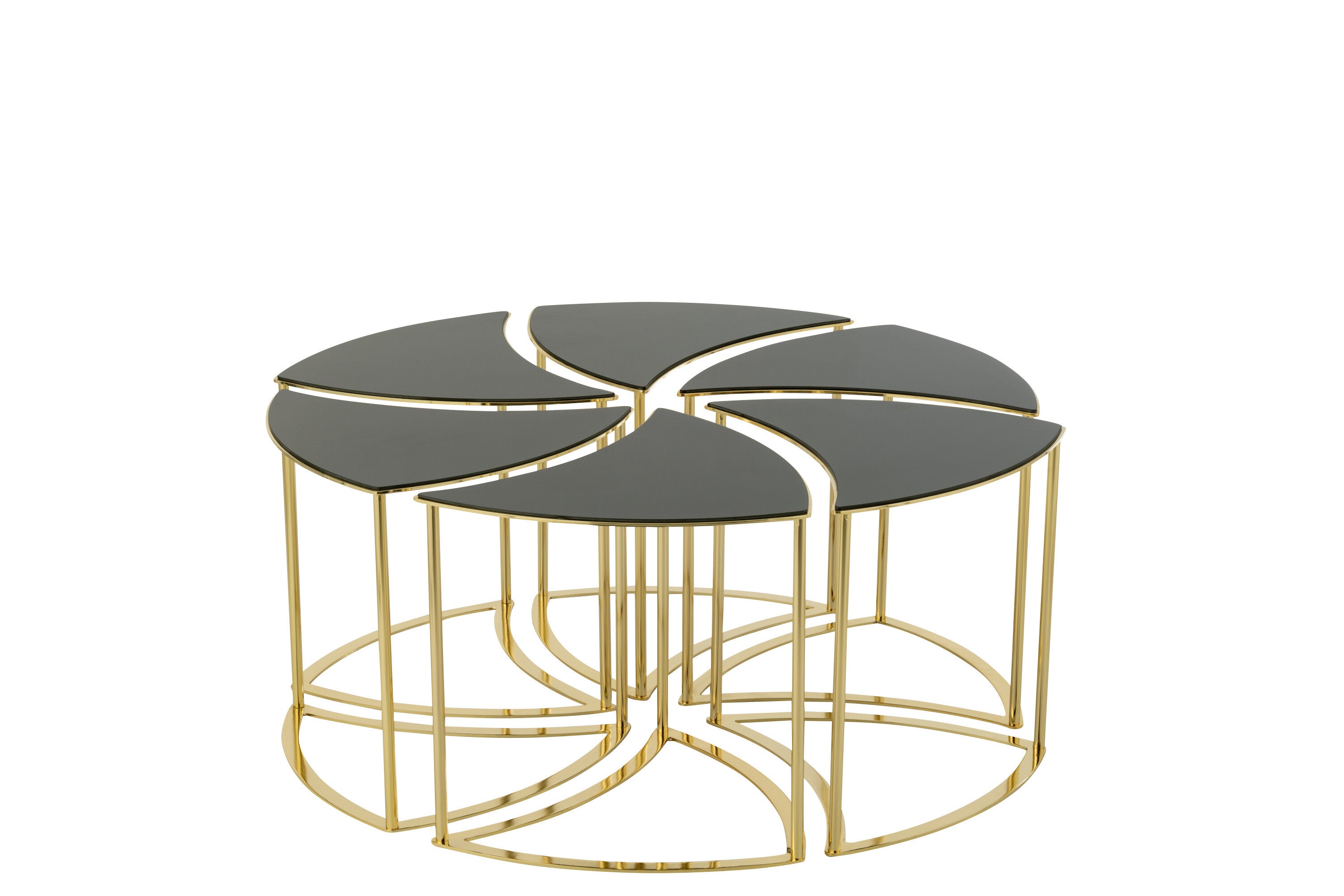 J-Line tafels Tornado - metaal|glas - goud - set van 6