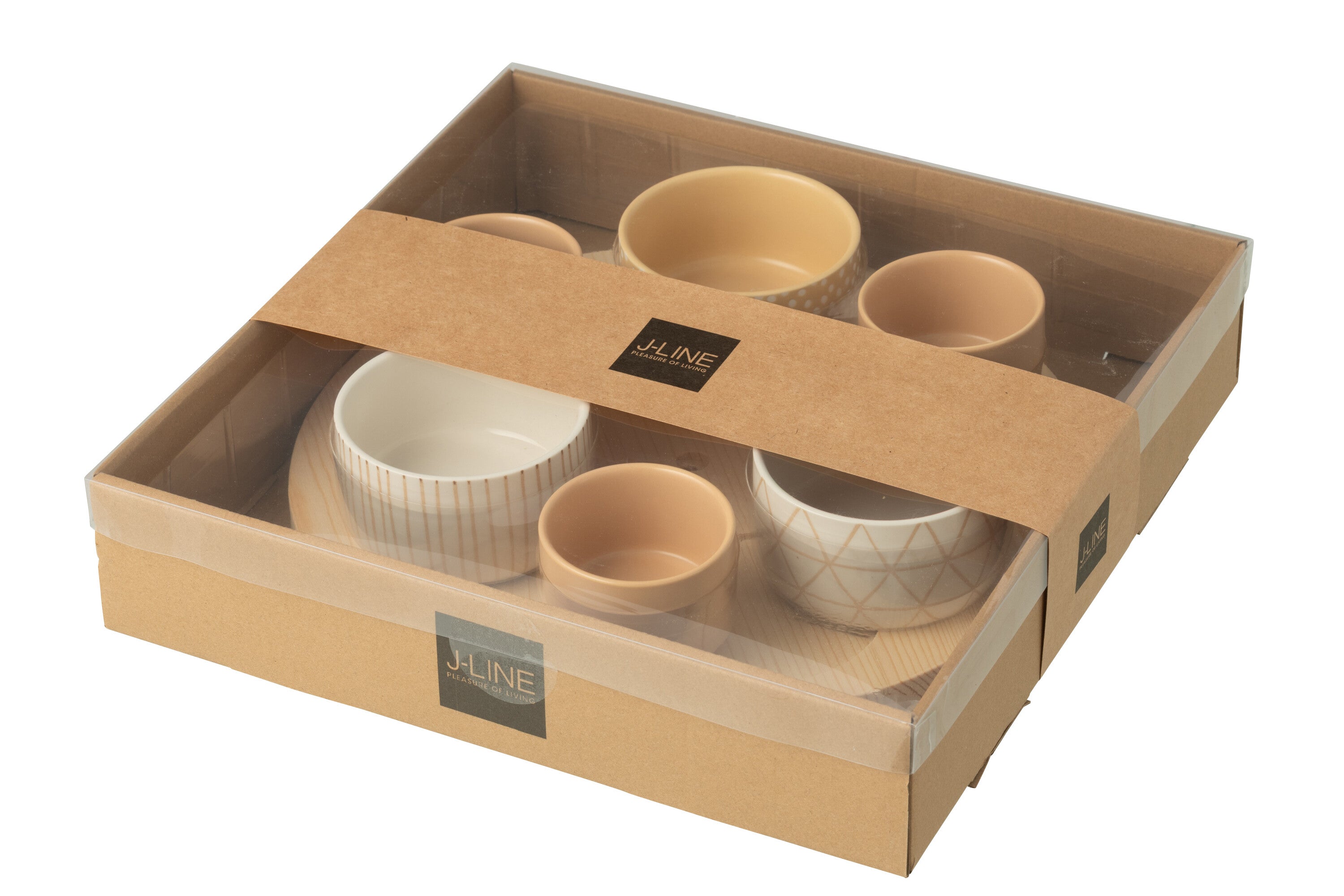 J-Line tapasplank 6 kommen + bambouschaal In Doos - keramiek