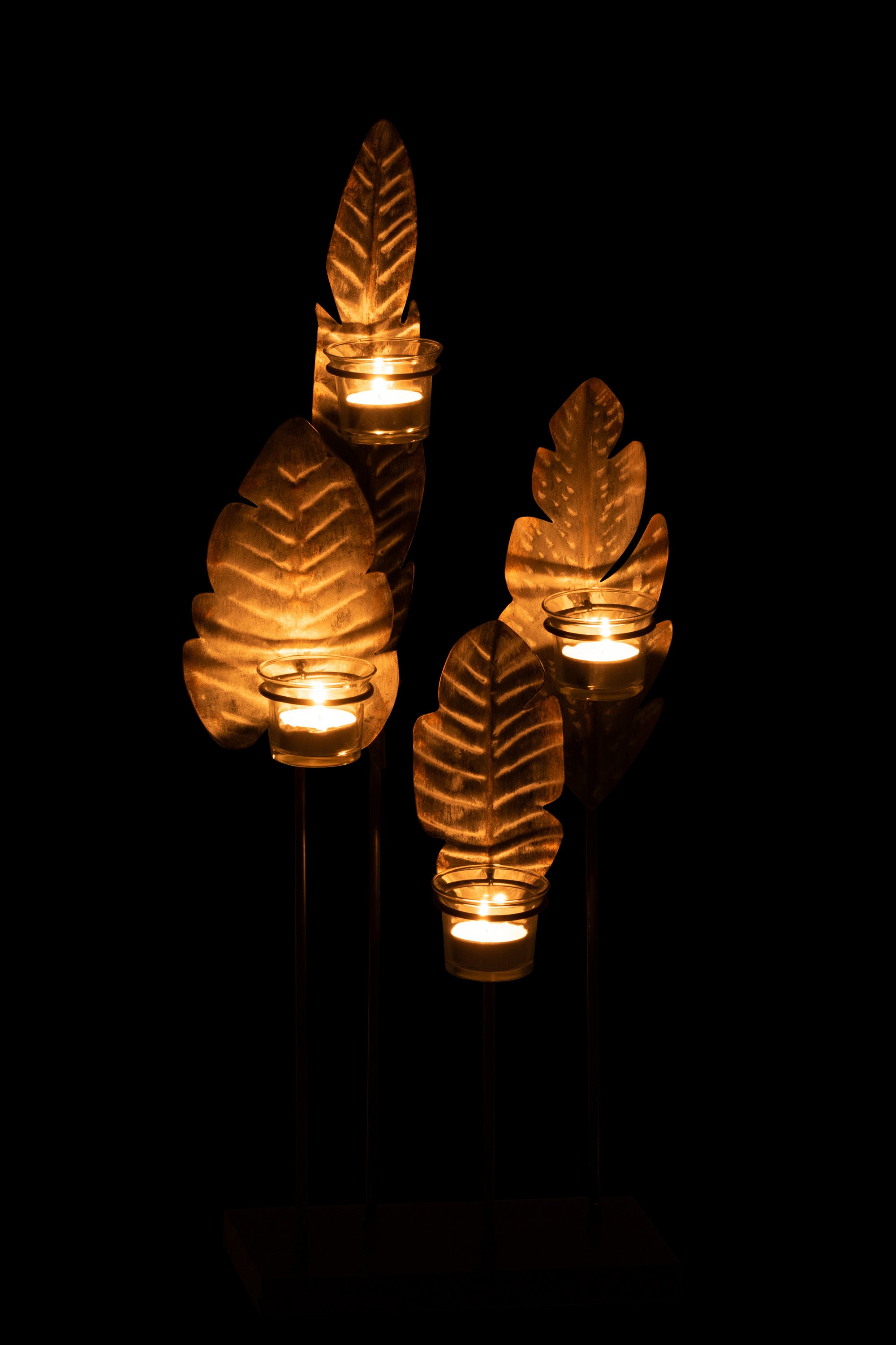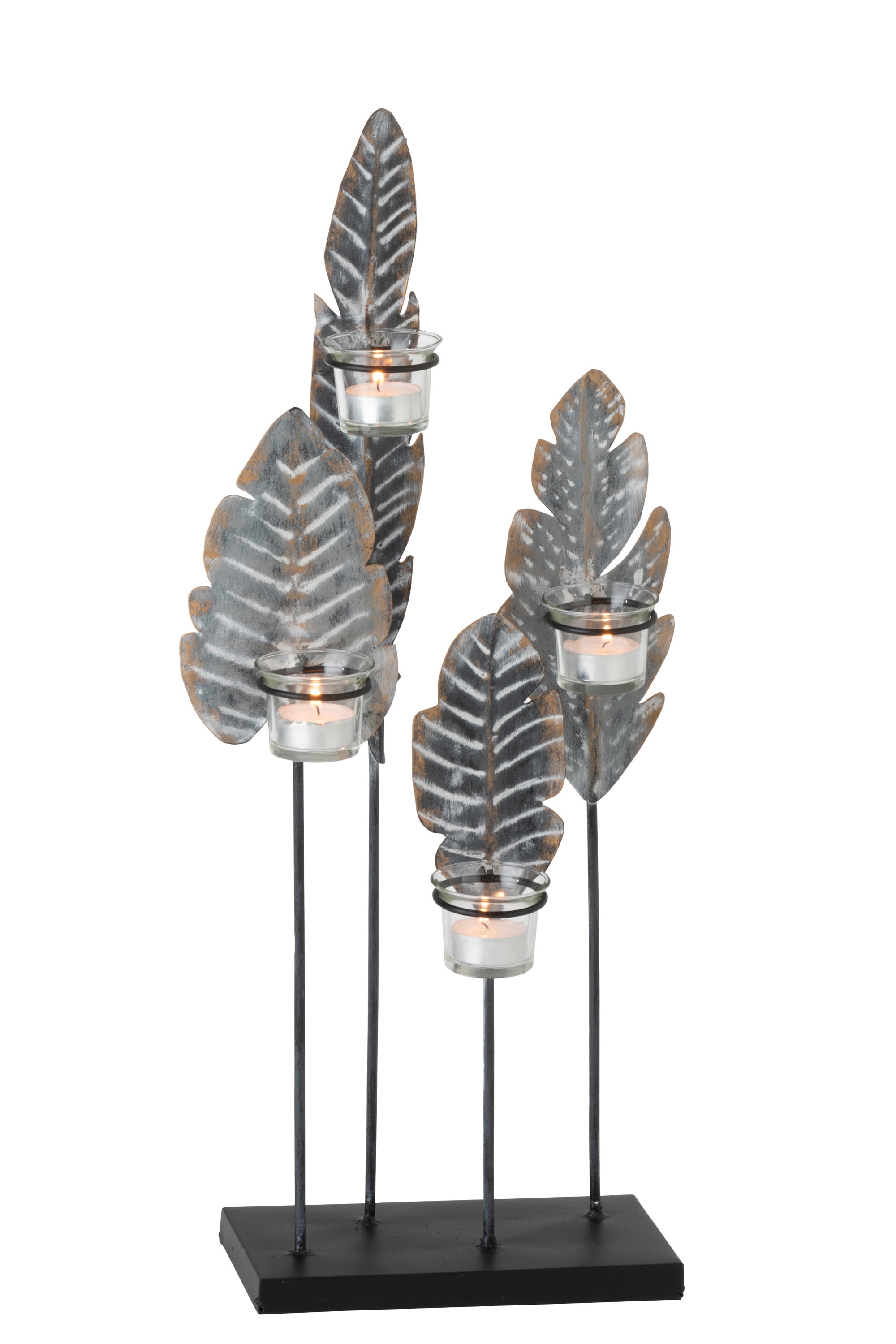 Theelichthouders zien we vaak terugkomen zowel in het interieur als in de tuin of op het balkon. Theelichthouders zorgen voor sfeervolle verlichting in elke ruimte, of dat nu de hal, de woonkamer of het toilet is! De theelichthouders van J-Line zijn leuk zowel met als zonder brandend waxinelichtje erin. Deze zwarte met grijze theelichthouder in de vorm van vier bladeren van J-Line is gemaakt van metaal en glas. De theelichthouder biedt ruimte voor meerdere waxinelichtjes. Specificaties - Gemaakt van glas en metaal