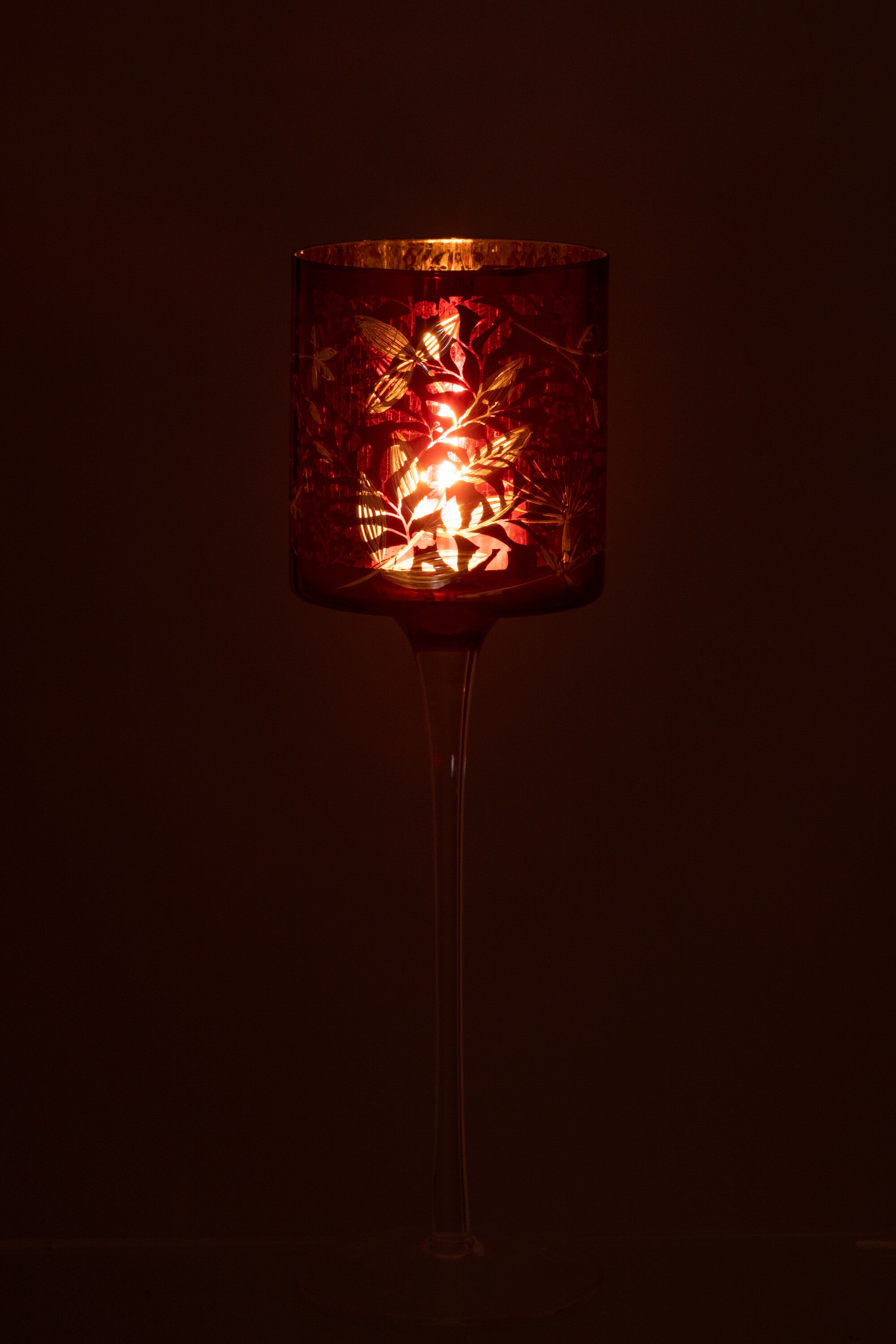 T-LICHTHOUDER OP VOET BLAADJES GLAS ROOD/ANTIEK GOUD LARGE is gemaakt en ontworpen door het Belgische bedrijf J-Line.