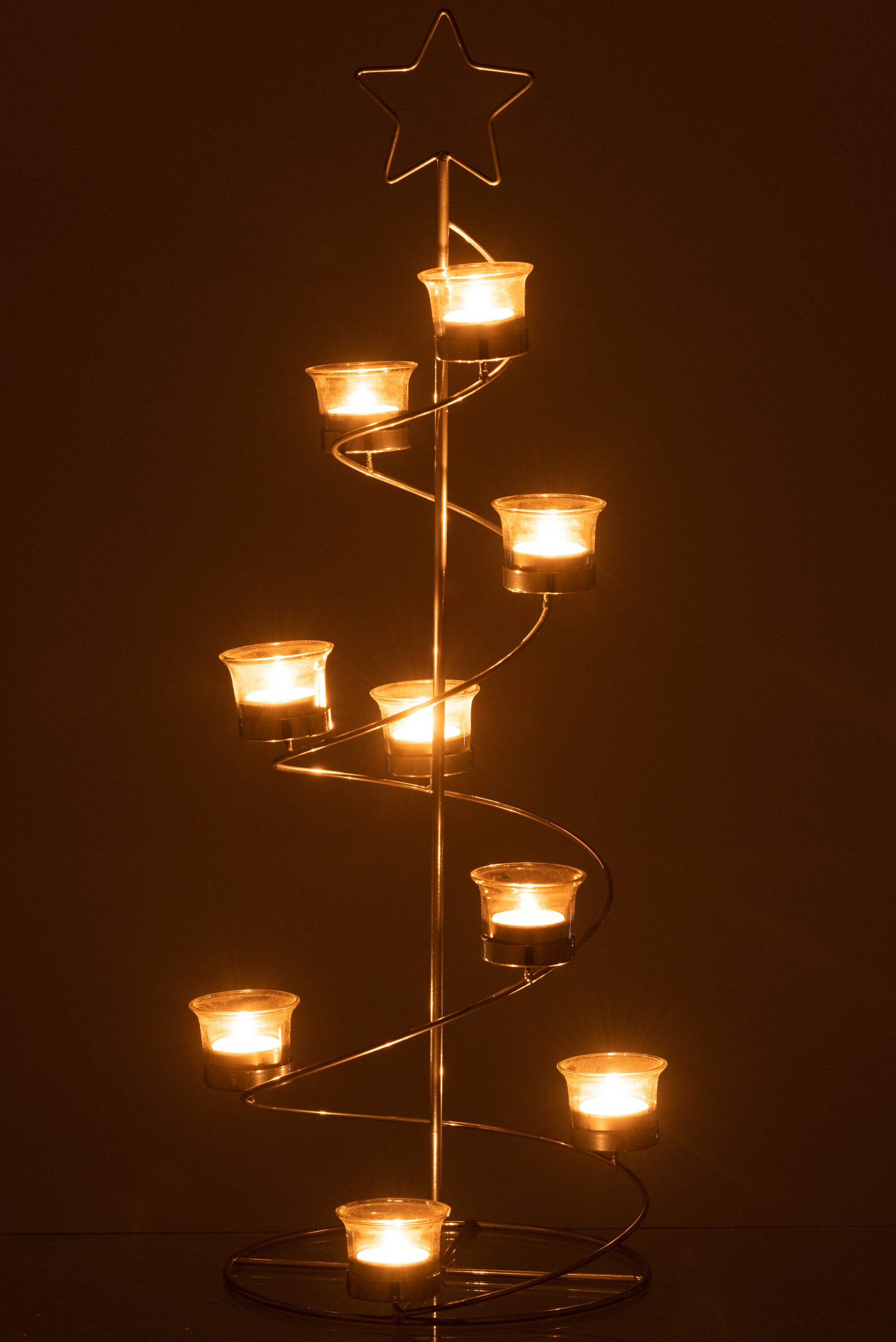 J-Line theelichthouder Boom Spiraal - metaal|glas - zilver -
