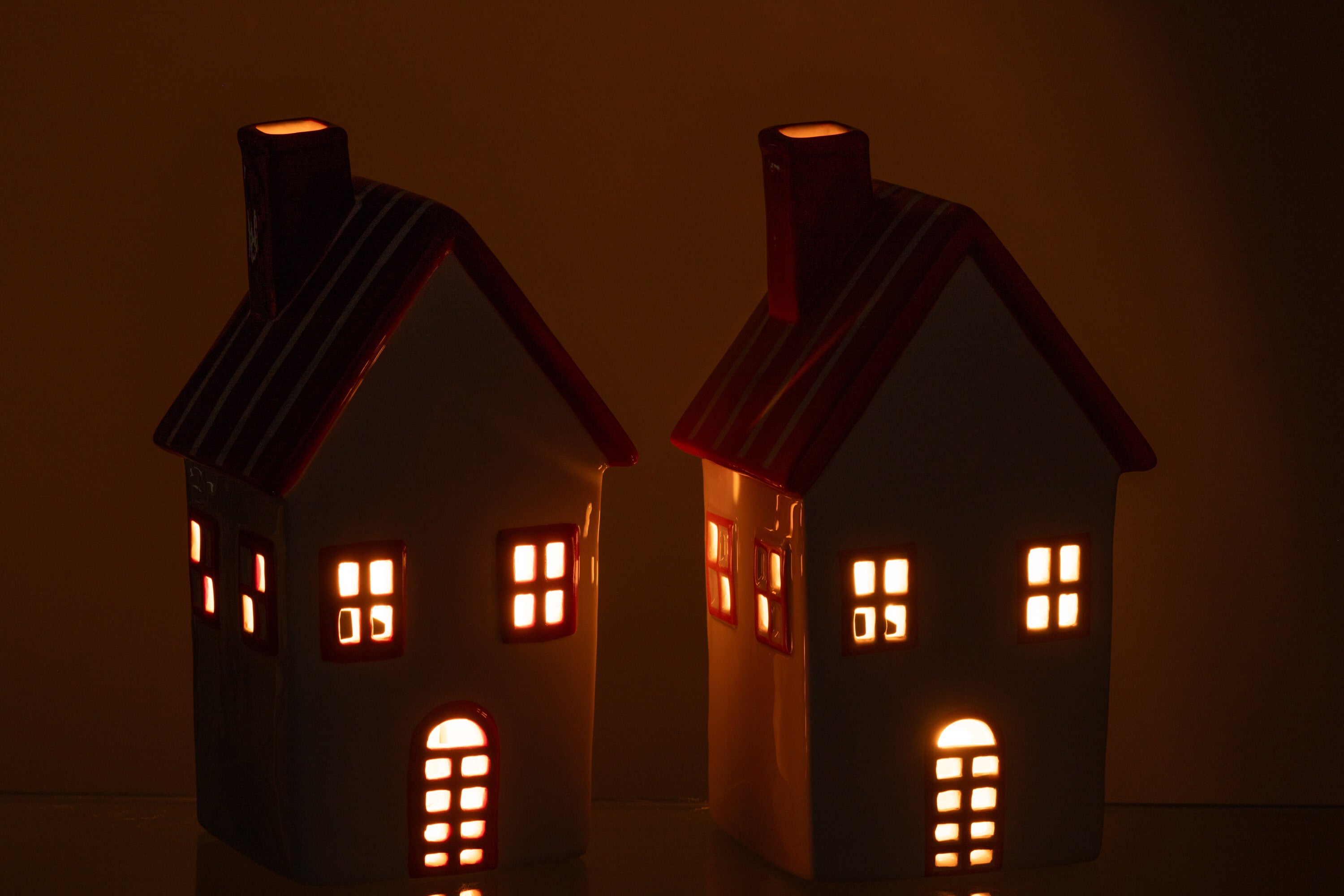 J-Line theelichthouder Huis Dolomiet - keramiek - oranje|rood - 2 stuks