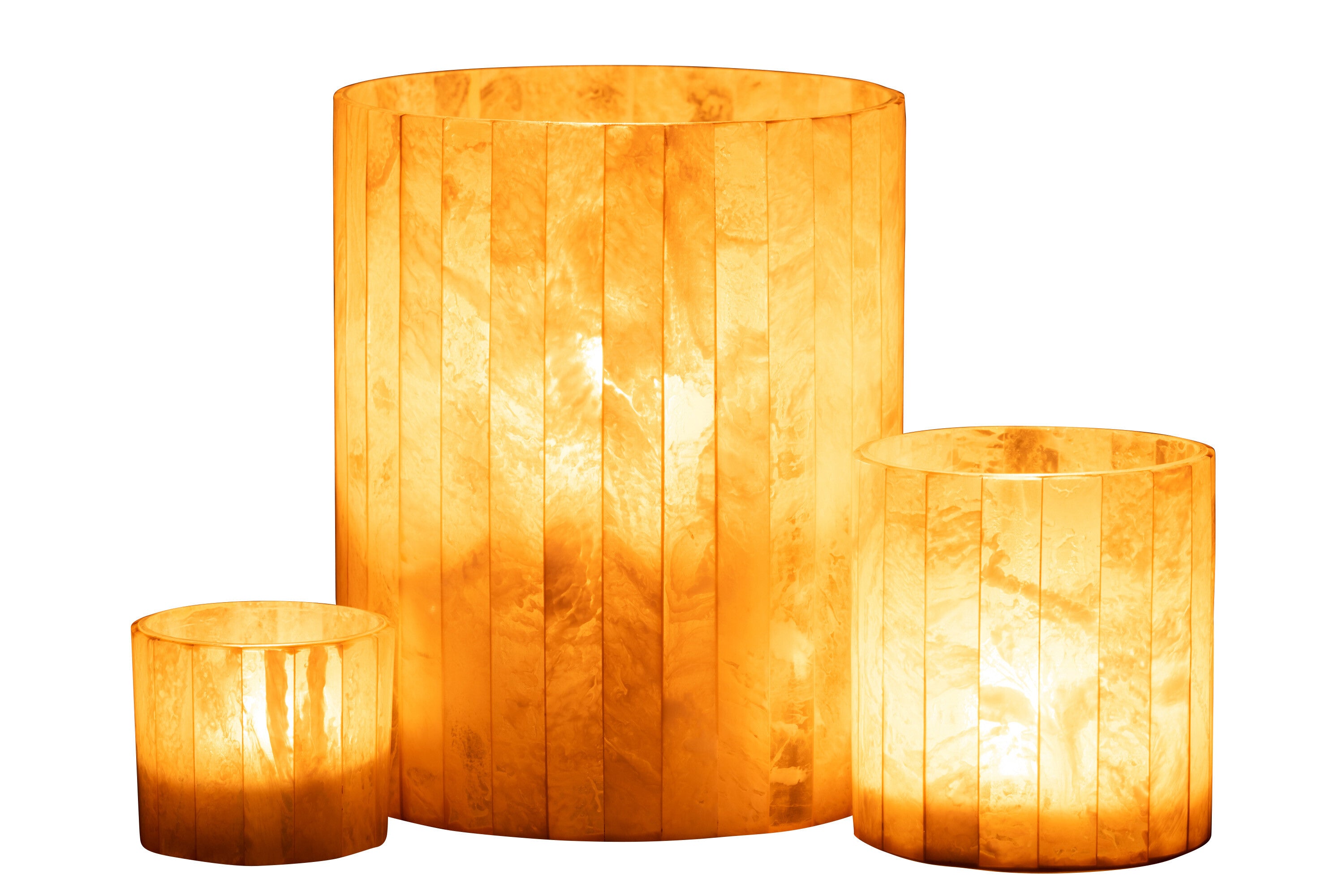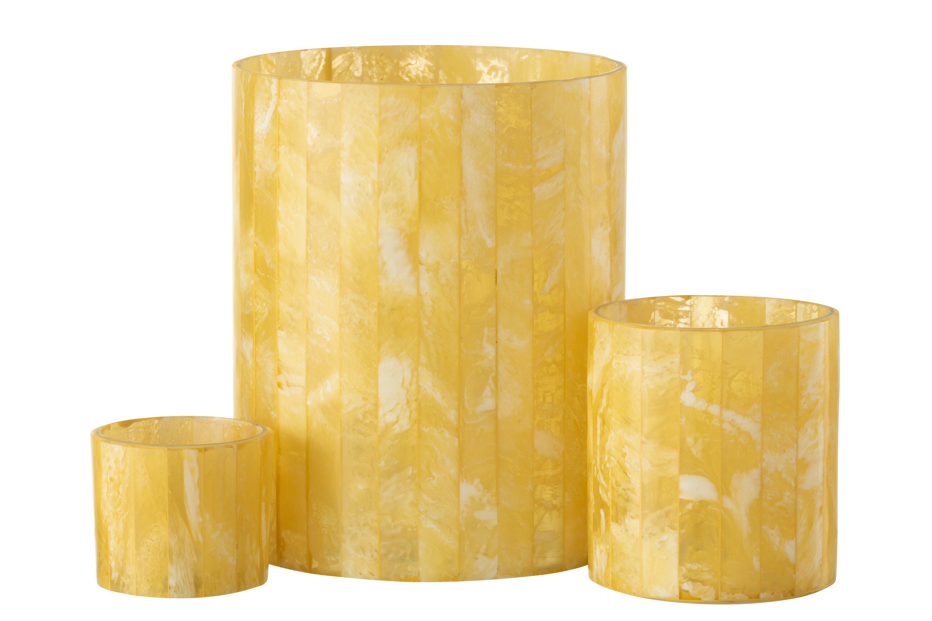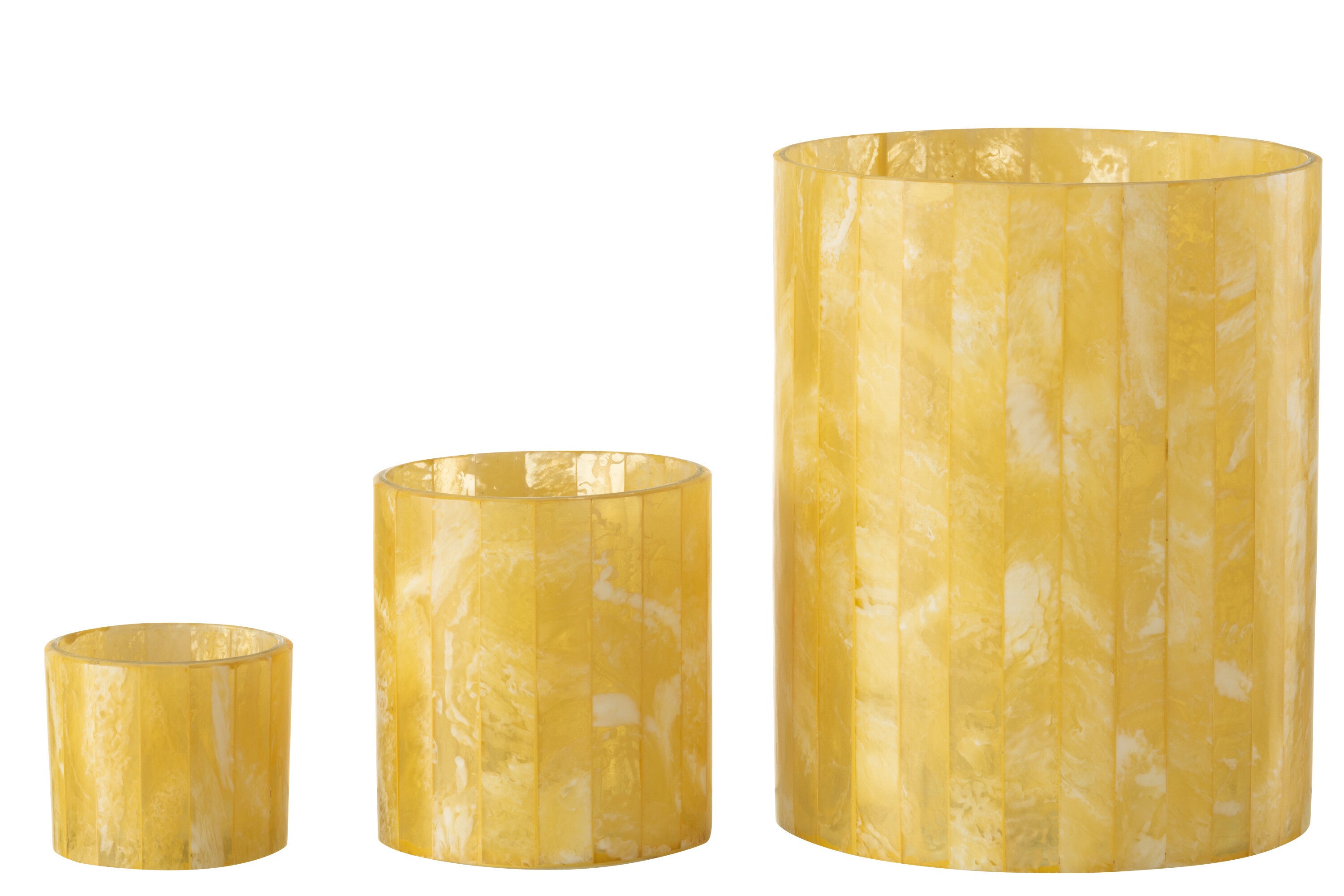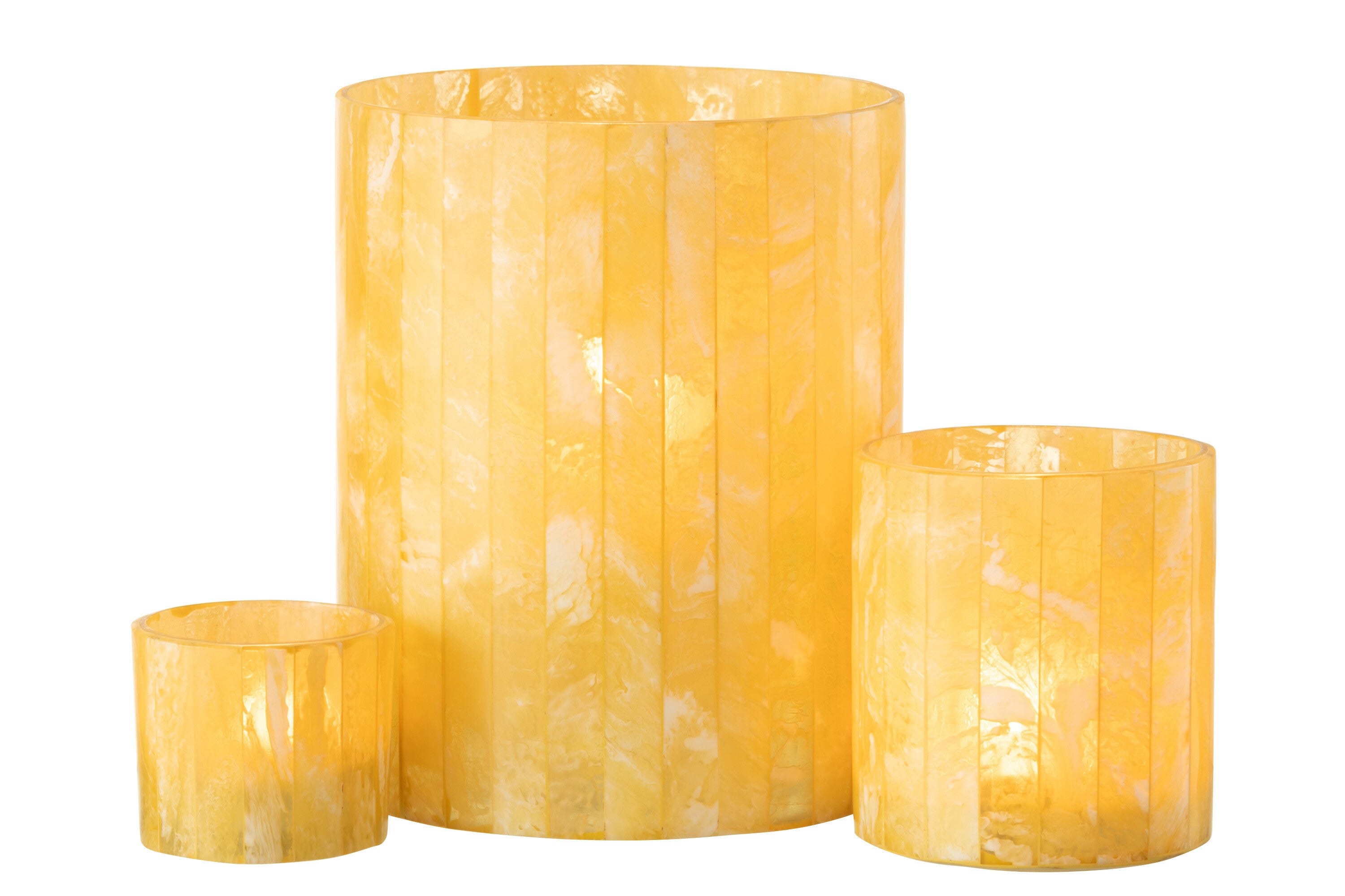 THEELICHTHOUDER LIJNEN GLAS/RESIN GEEL LARGE is gemaakt en ontworpen door het Belgische bedrijf J-Line.