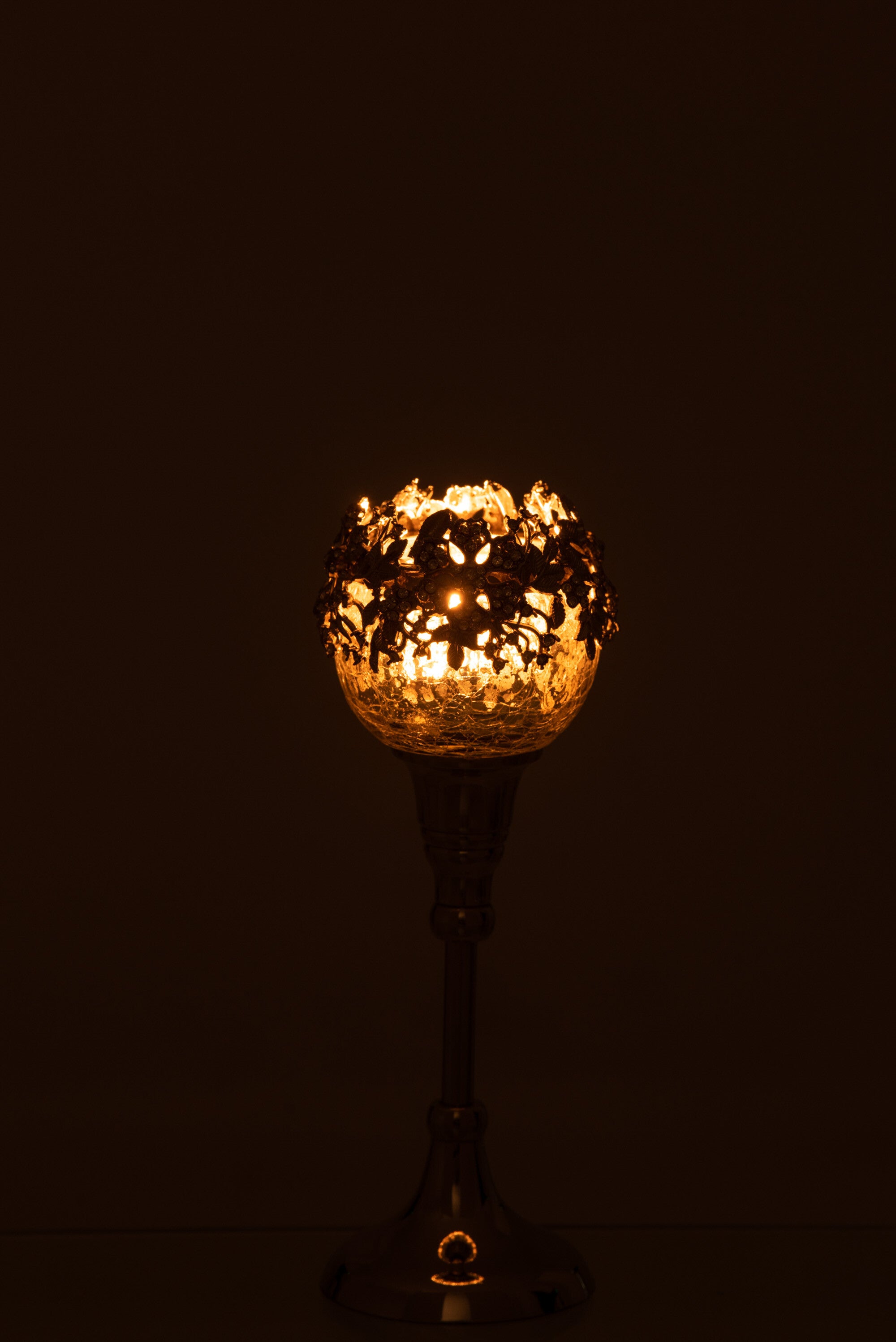 J-line - Theelichthouder Op Voet Juweel Metaal Zilver Small - 9x9x23cm
