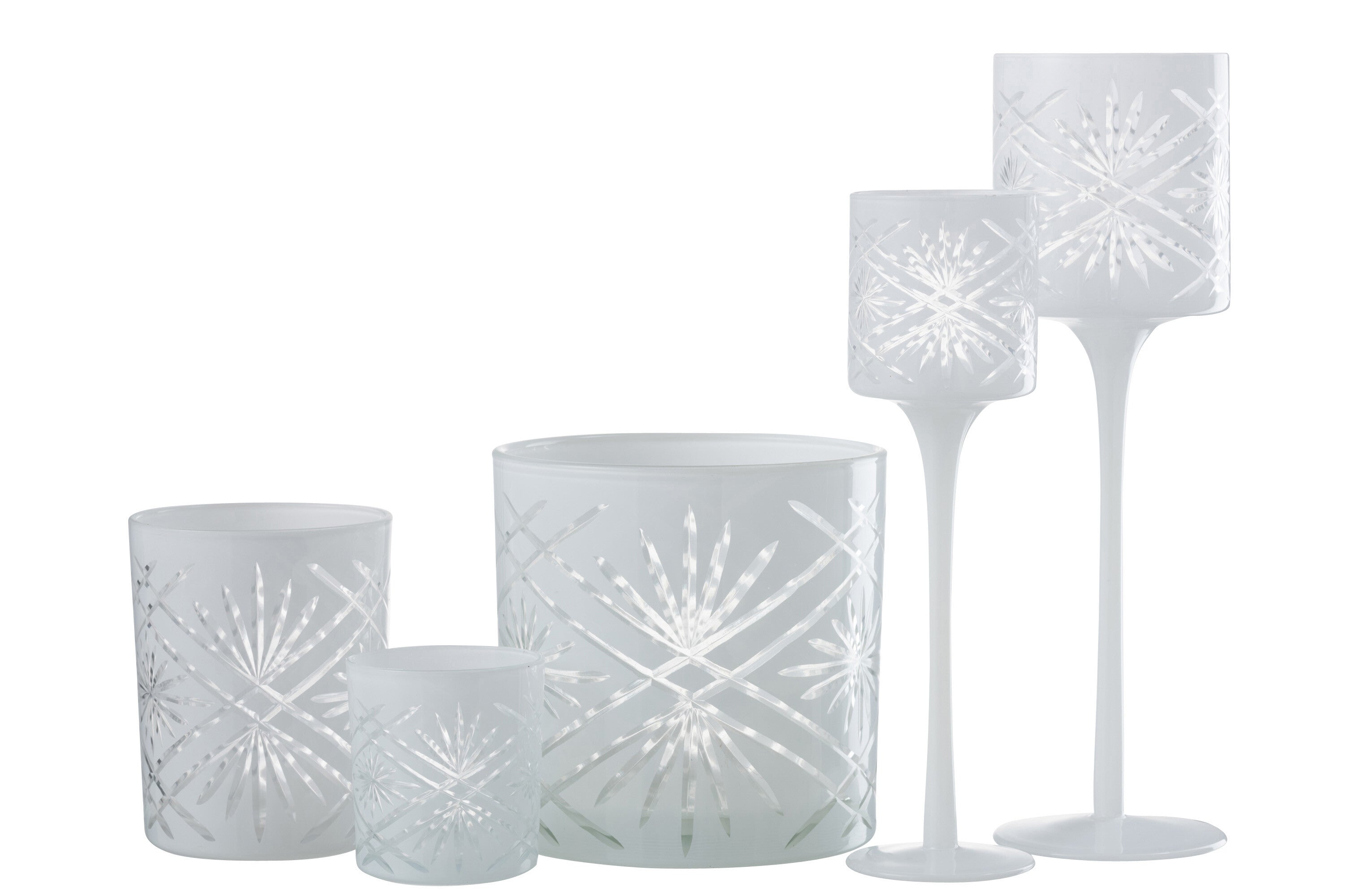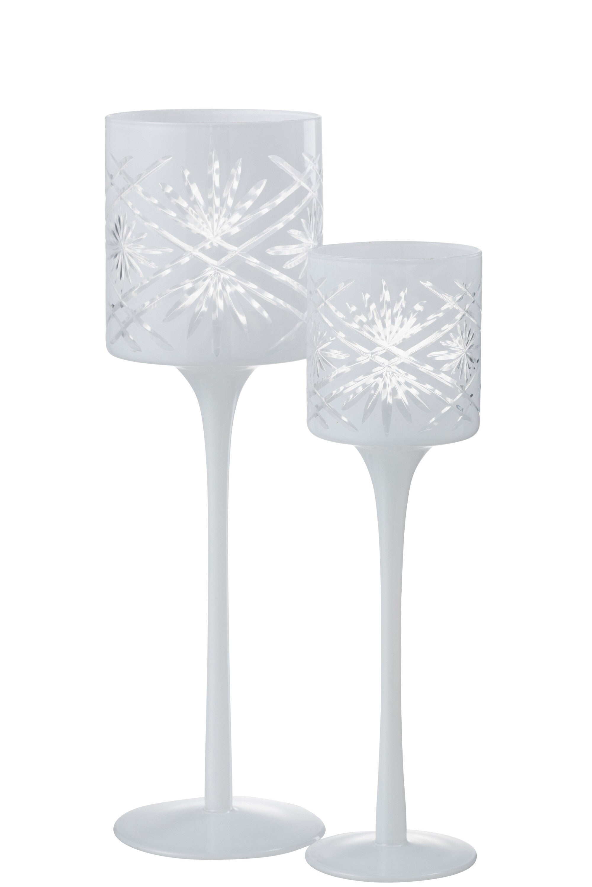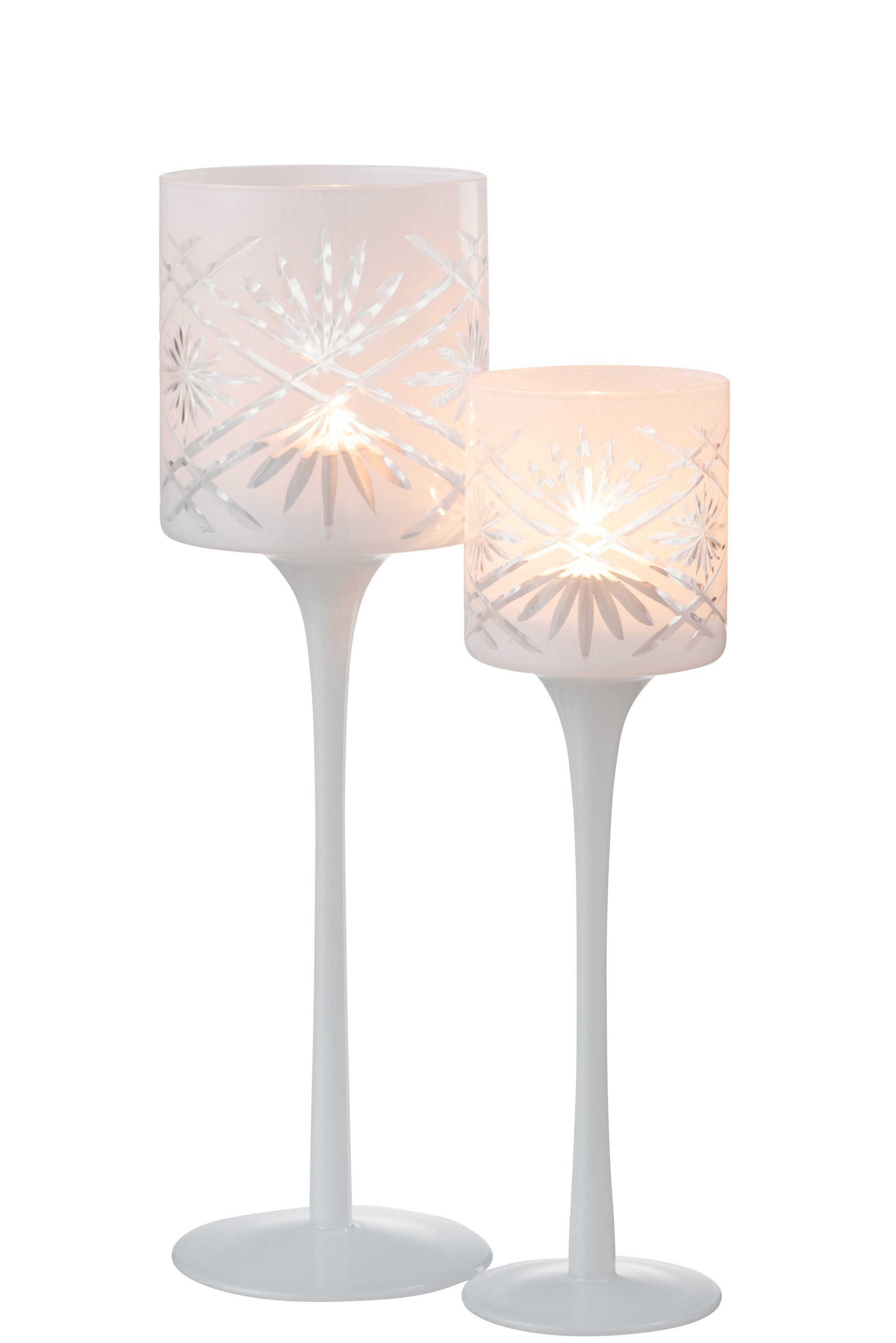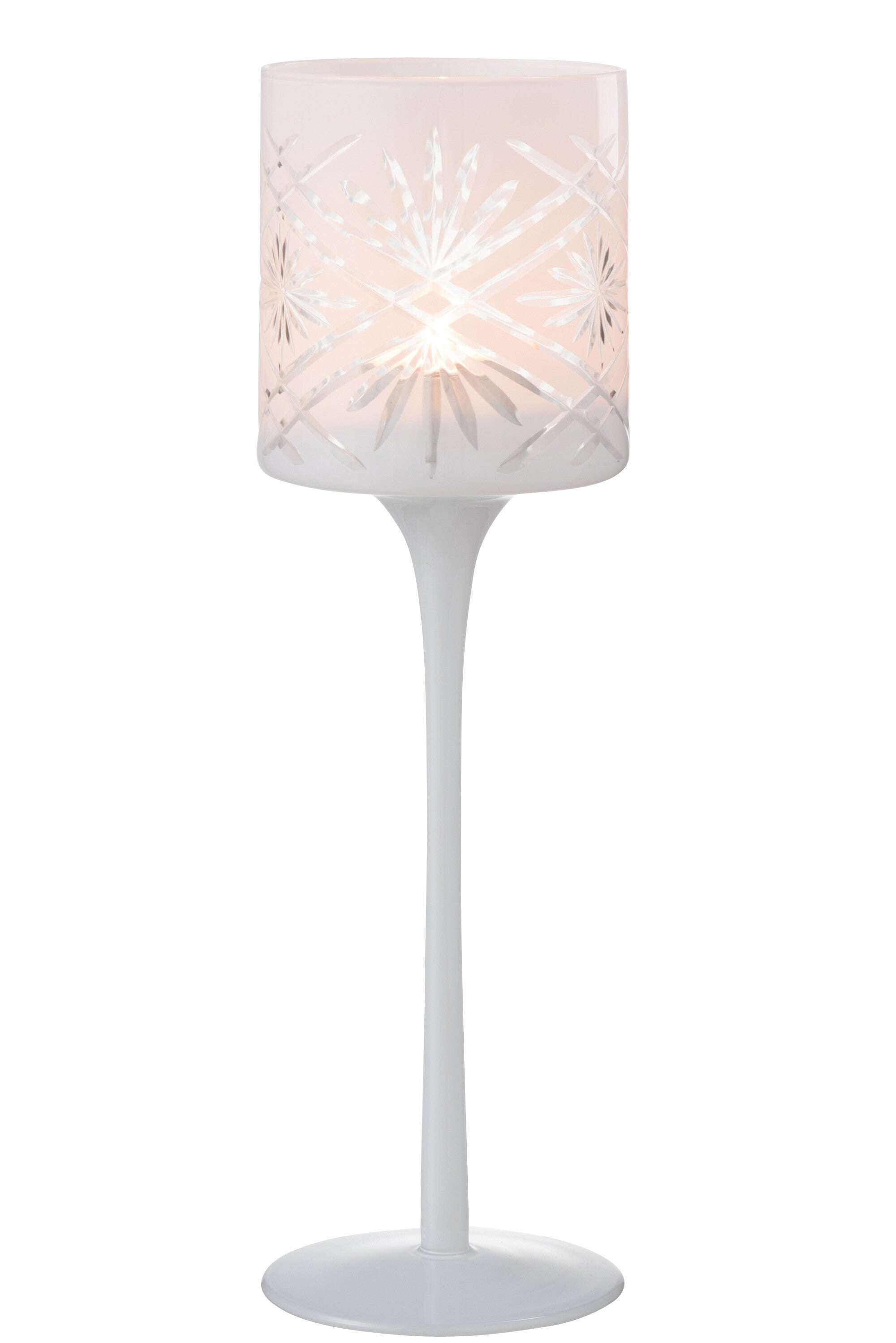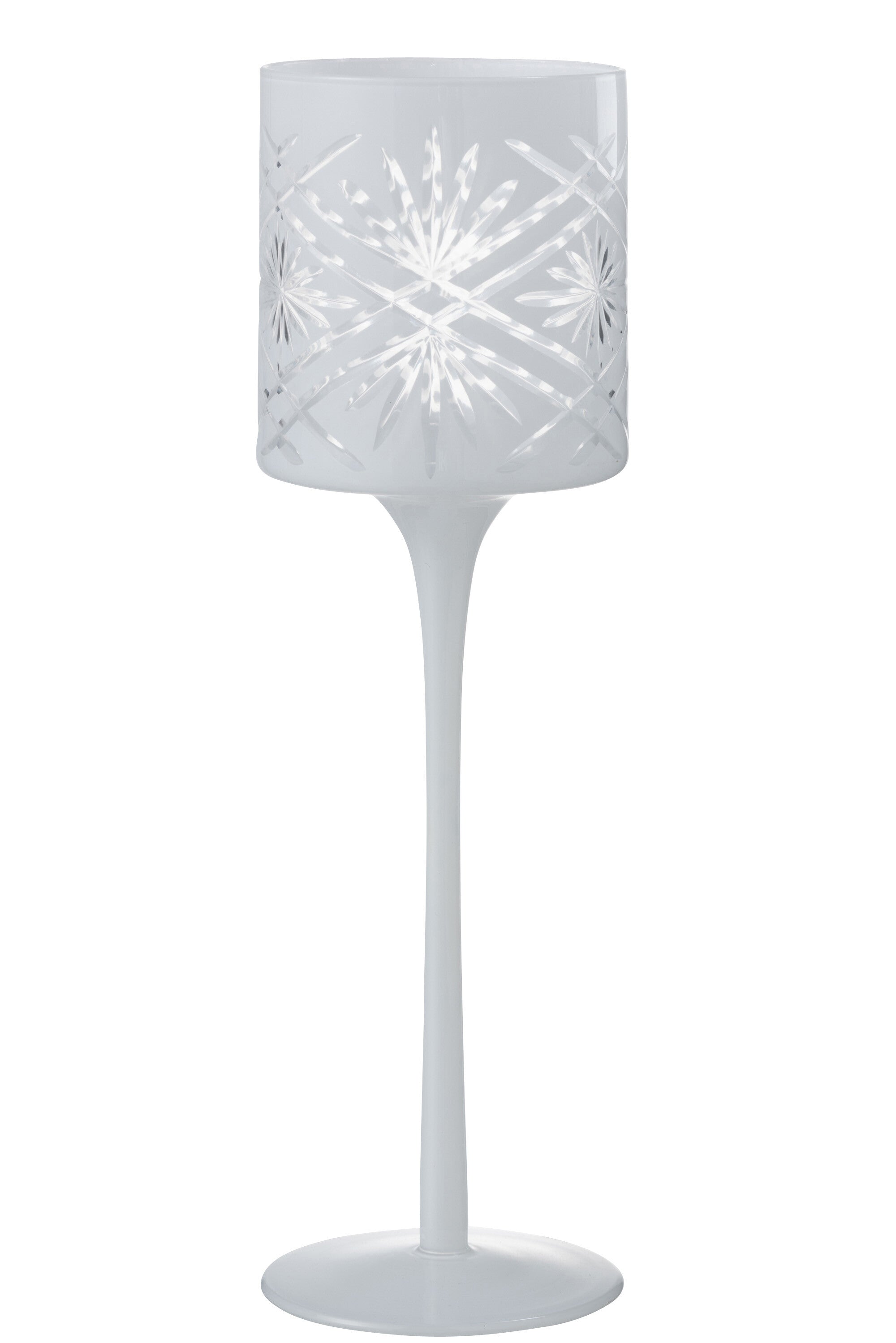 THEELICHTHOUDER OP VOET SANTORINI GLAS WIT LARGE is gemaakt en ontworpen door het Belgische bedrijf J-Line.