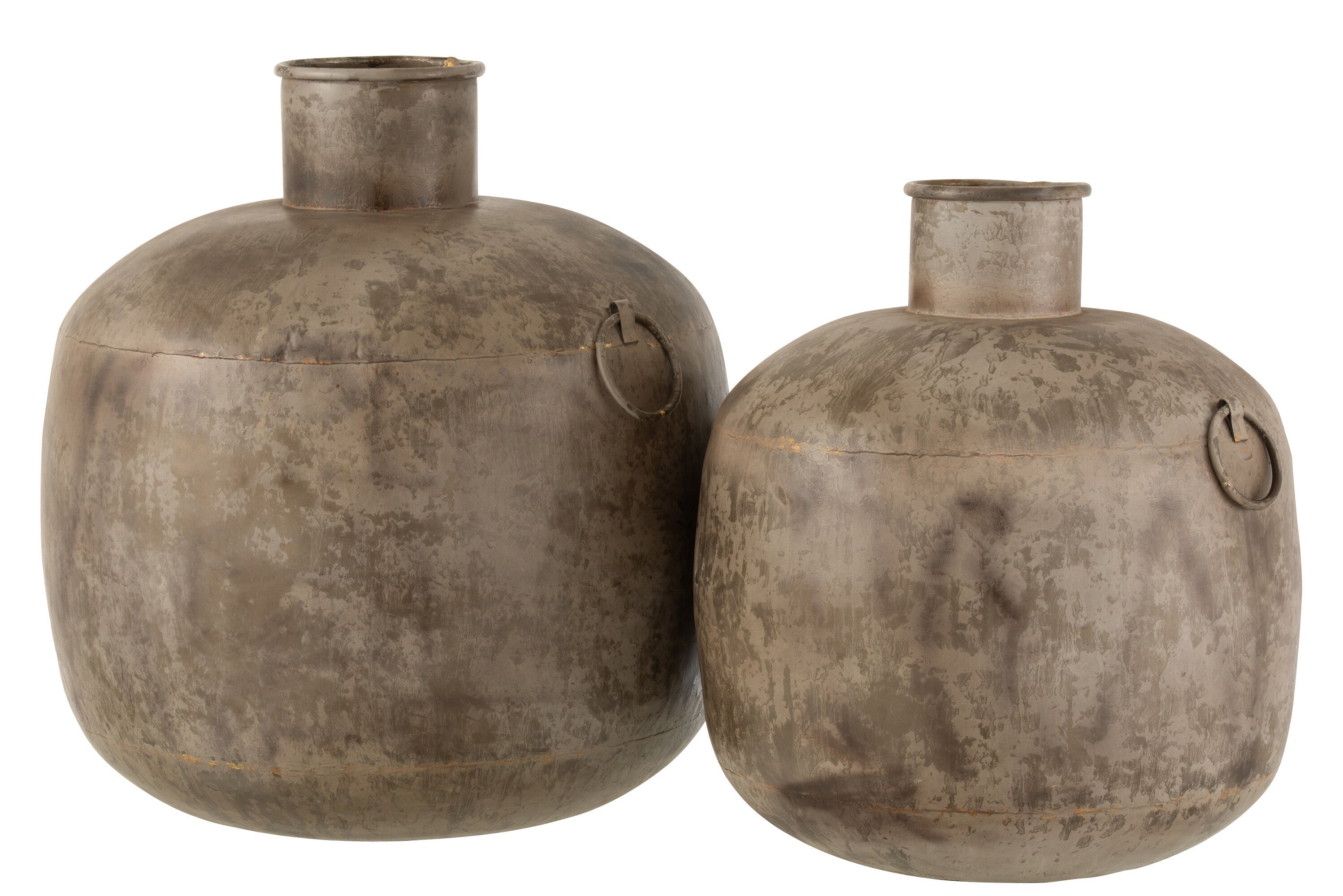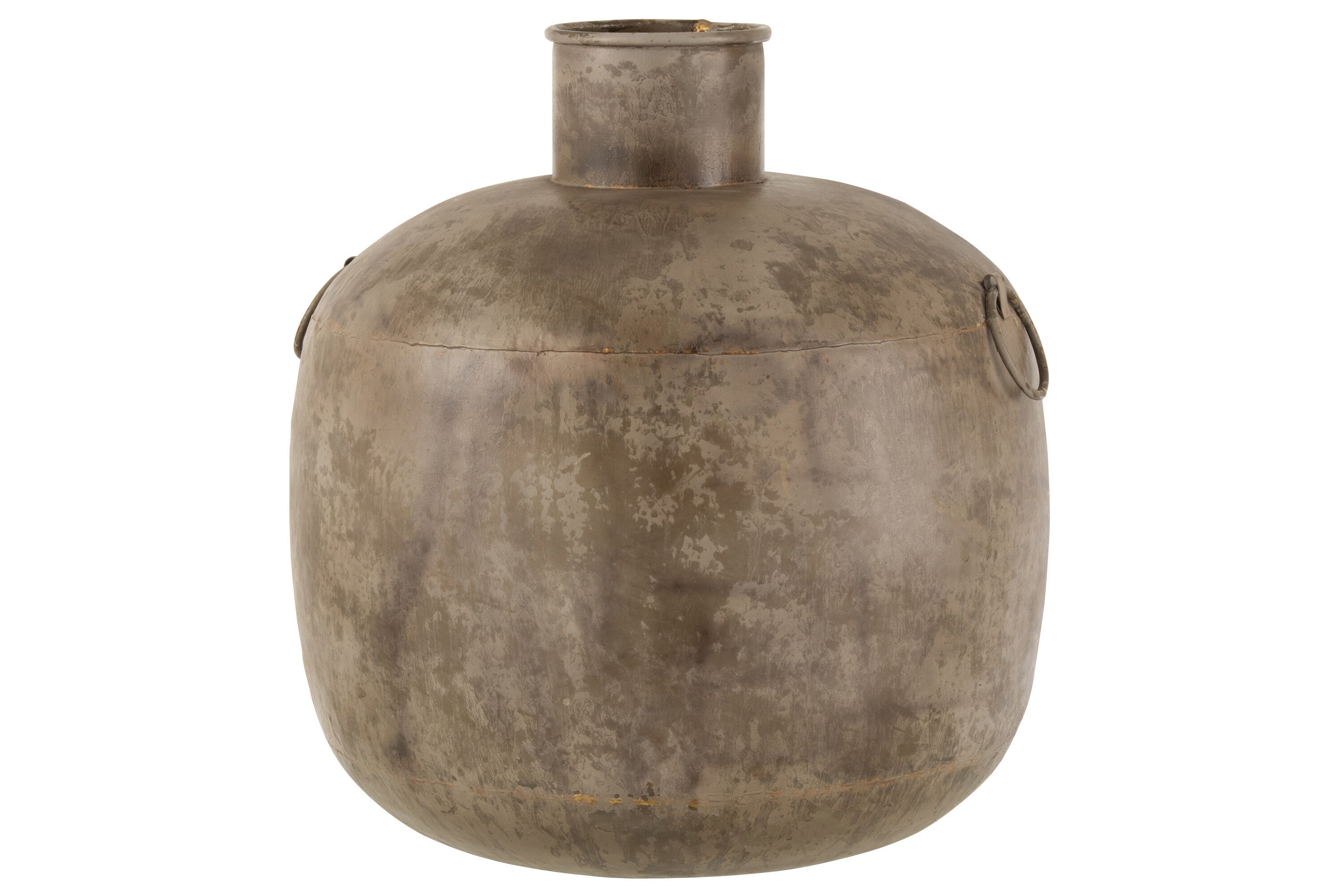 J-line - Vaas Antiek Rond Bruin Large - 50x50x53cm