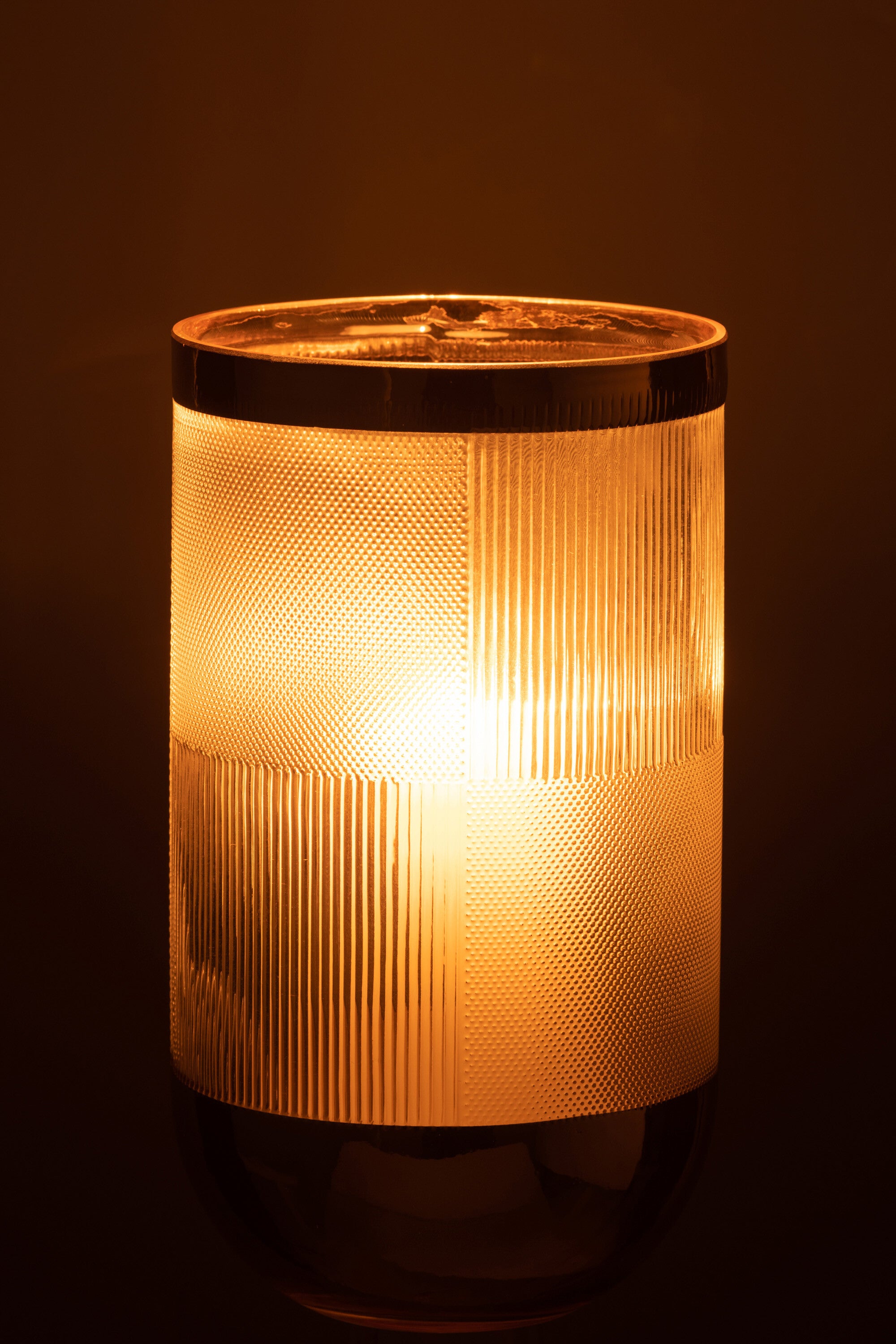 J-Line - Vaas Cylinder Motief Glas Transparant|goud Large - 15x15x26cm