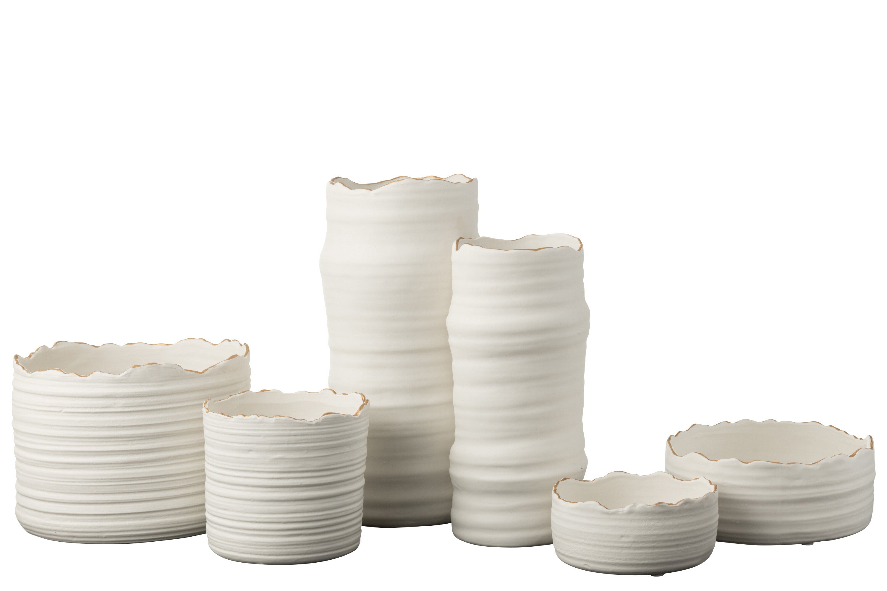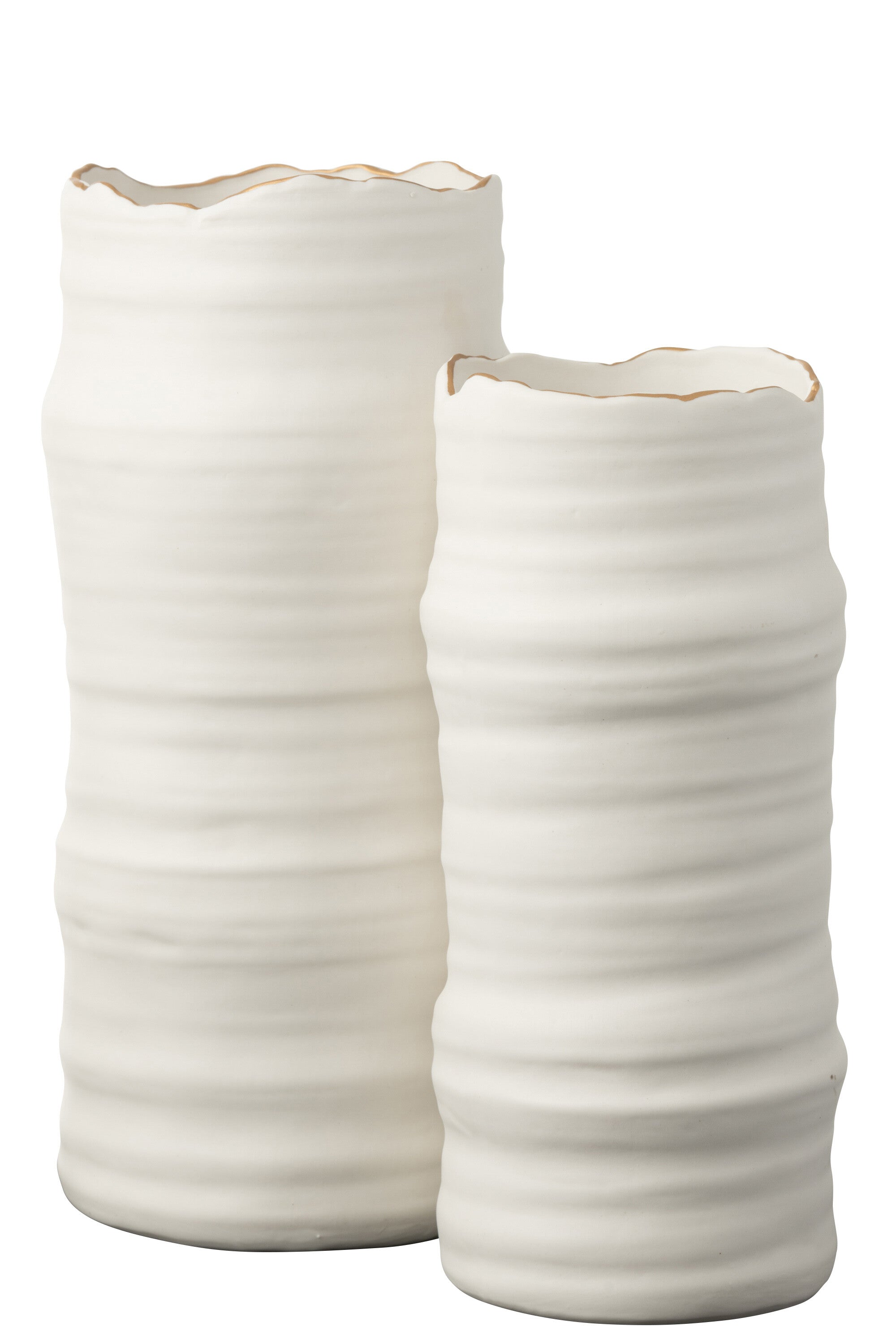 J-Line vaas Golven - porselein - wit|goud - 31.5 cm hoog