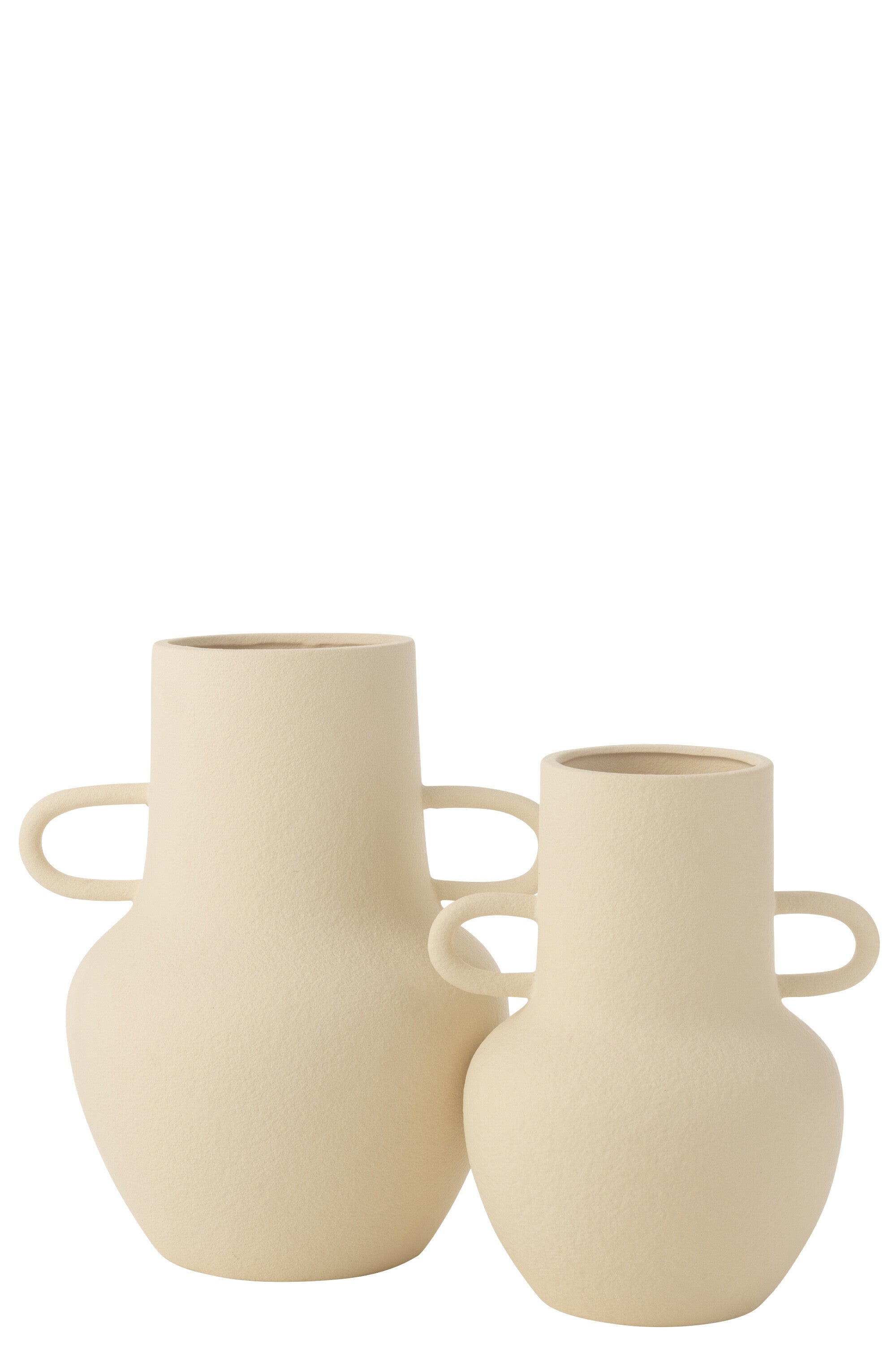 J-Line vaas Kruik 2 Handvat - keramiek - beige - large - 29.5 cm hoog