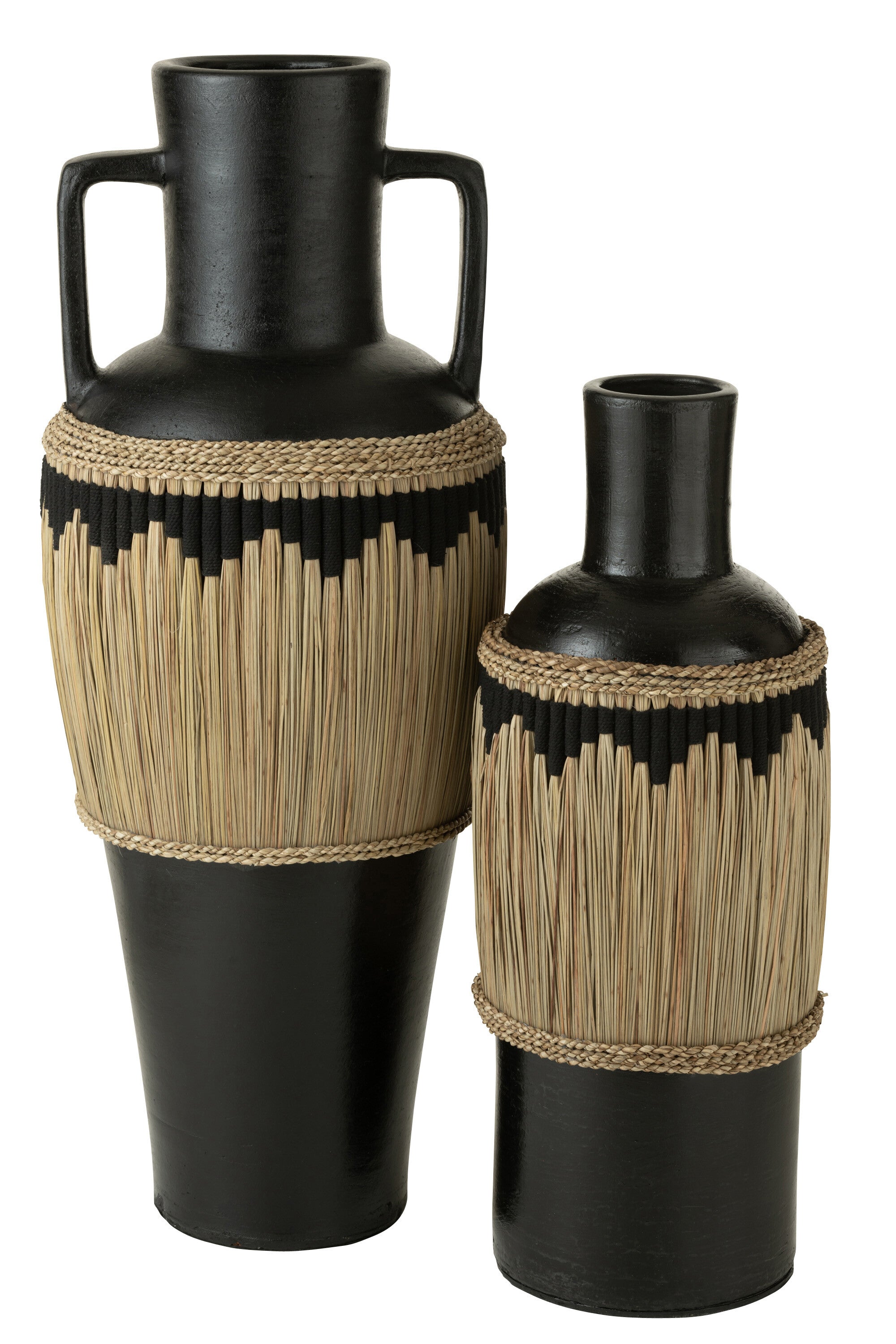 J-Line vaas Motief + Handvaten - terracotta|gras - zwart|nat