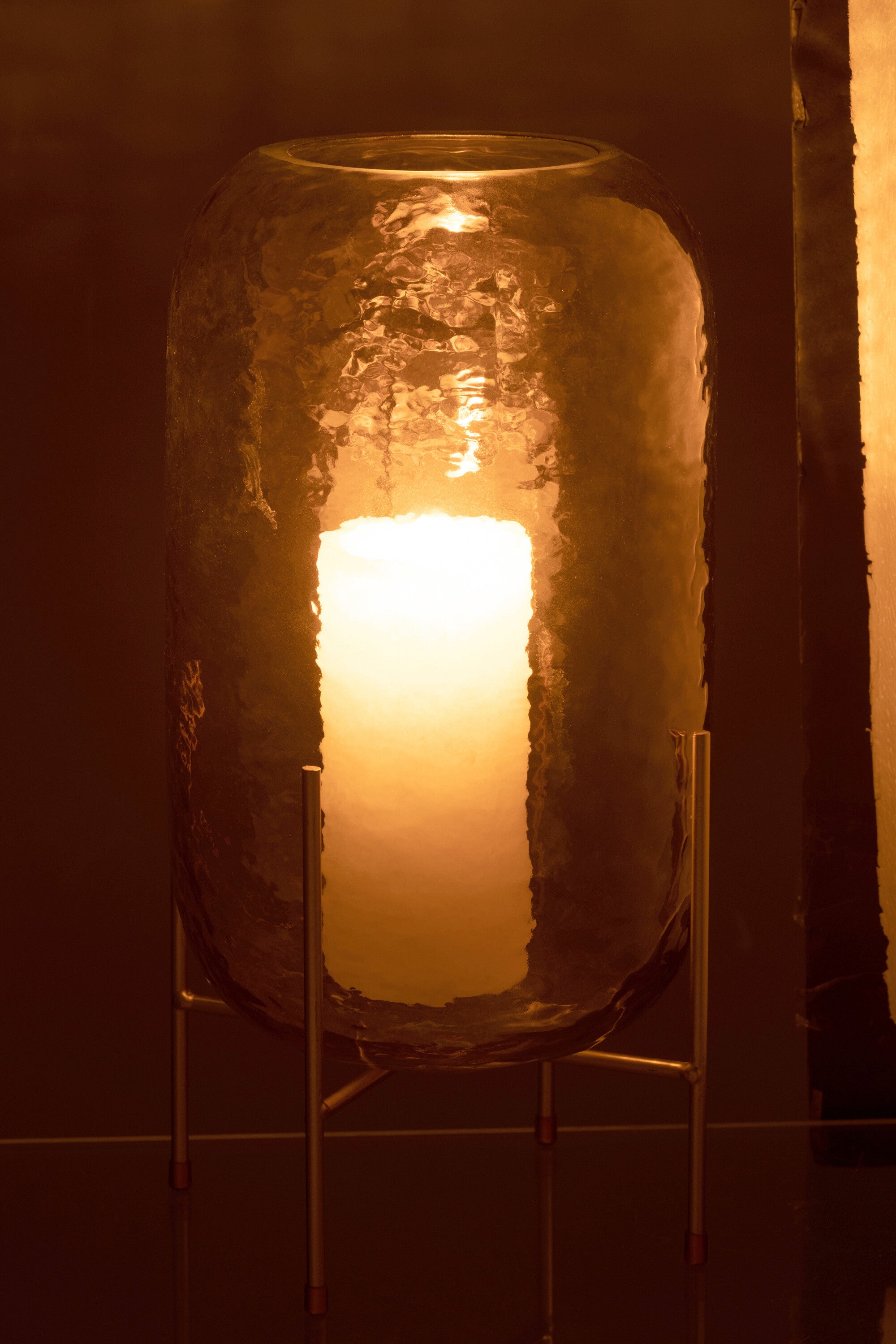 J-Line vaas Rond Op Voet - glas - bruin|goud - large - 36.5 cm hoog