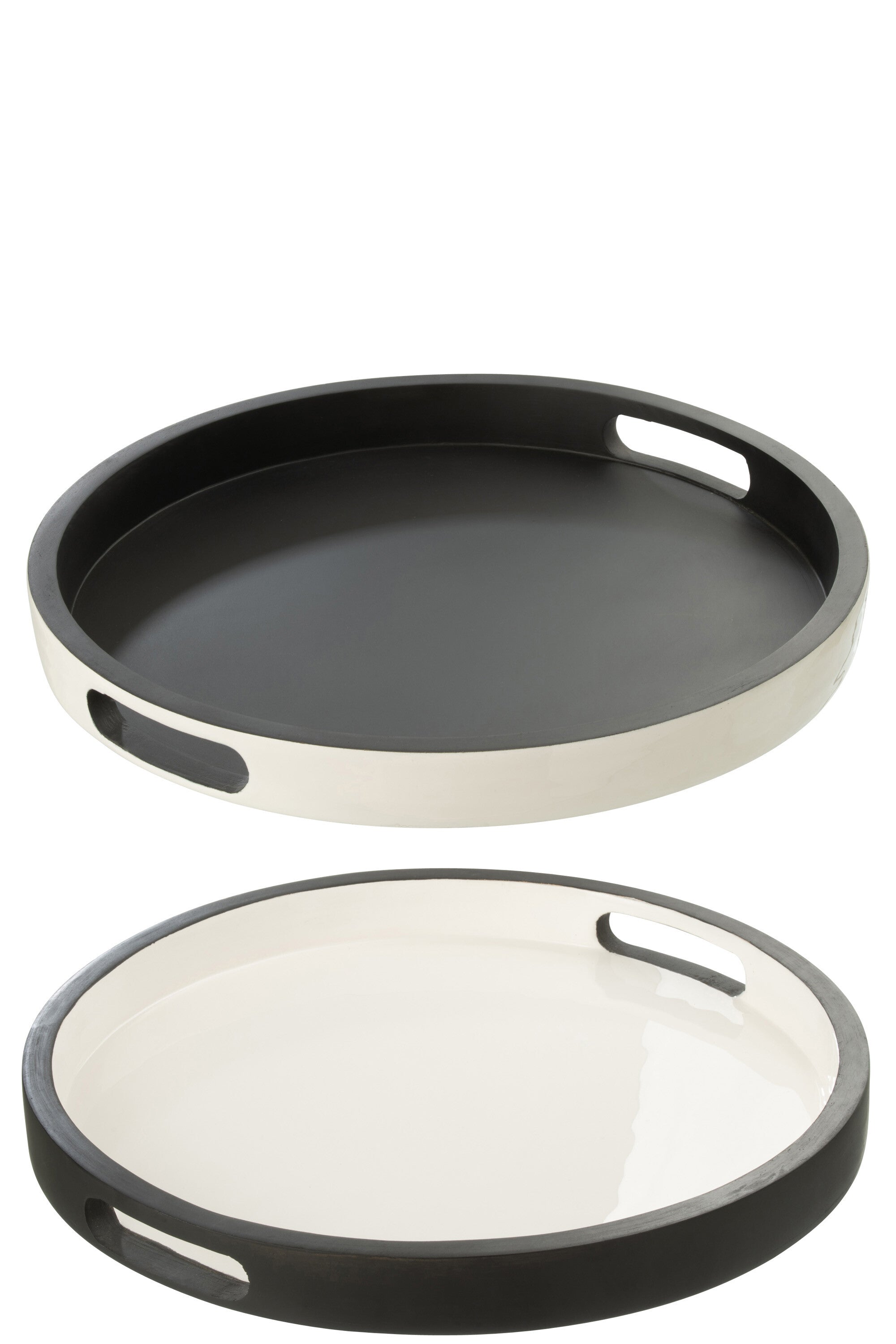 J-Line Vik plateau - dienblad - hout - black| wit - L - 2x