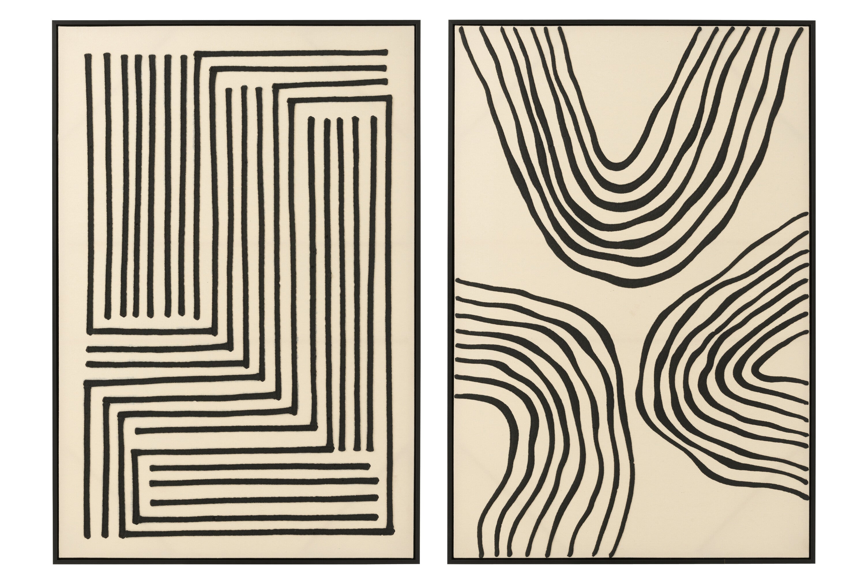 J-Line wanddecoratie Cotton - canvas - ecru|zwart - 2 stuks