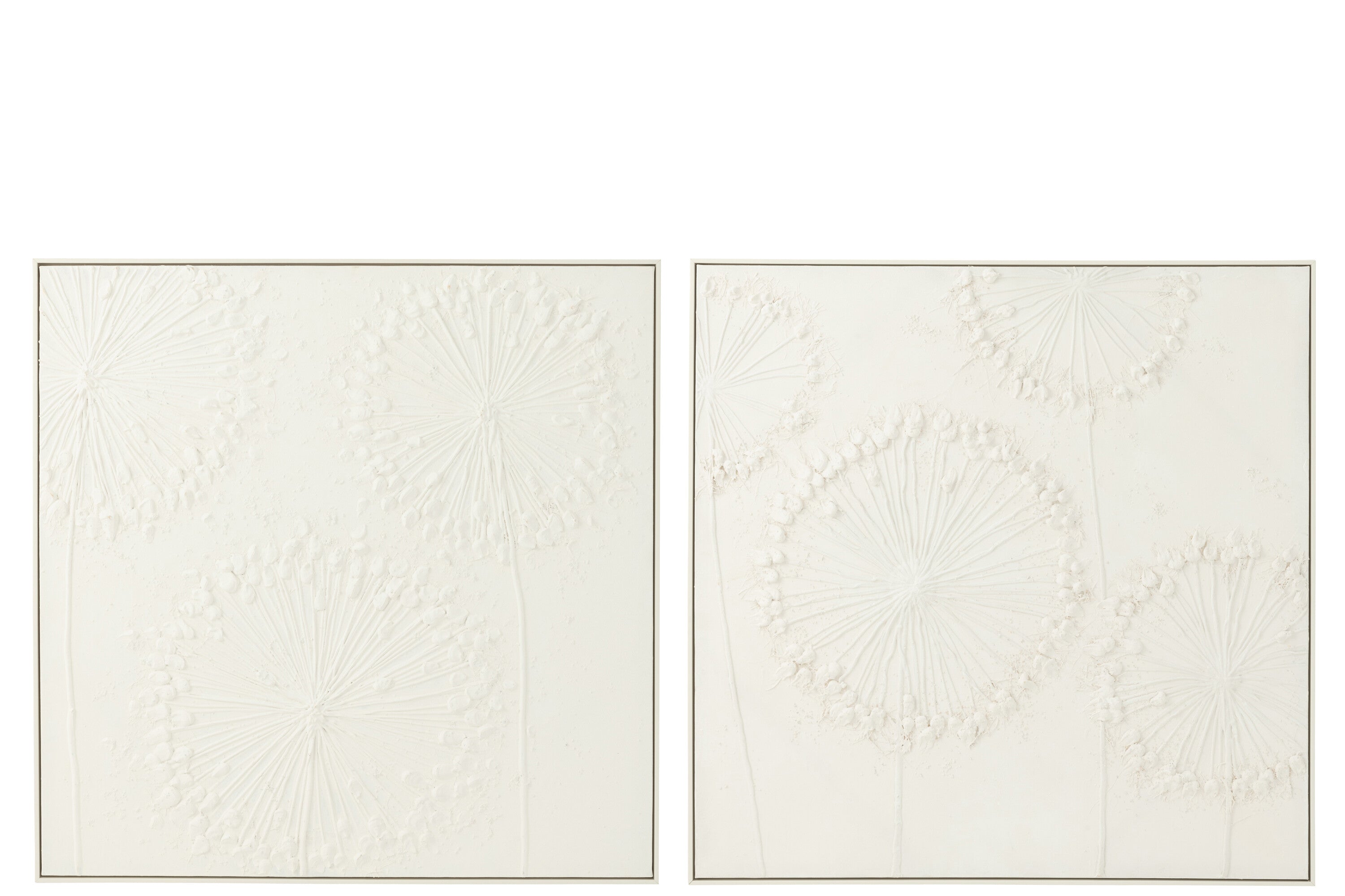 J-Line wanddecoratie Dandelion - canvas - ecru - 2 stuks