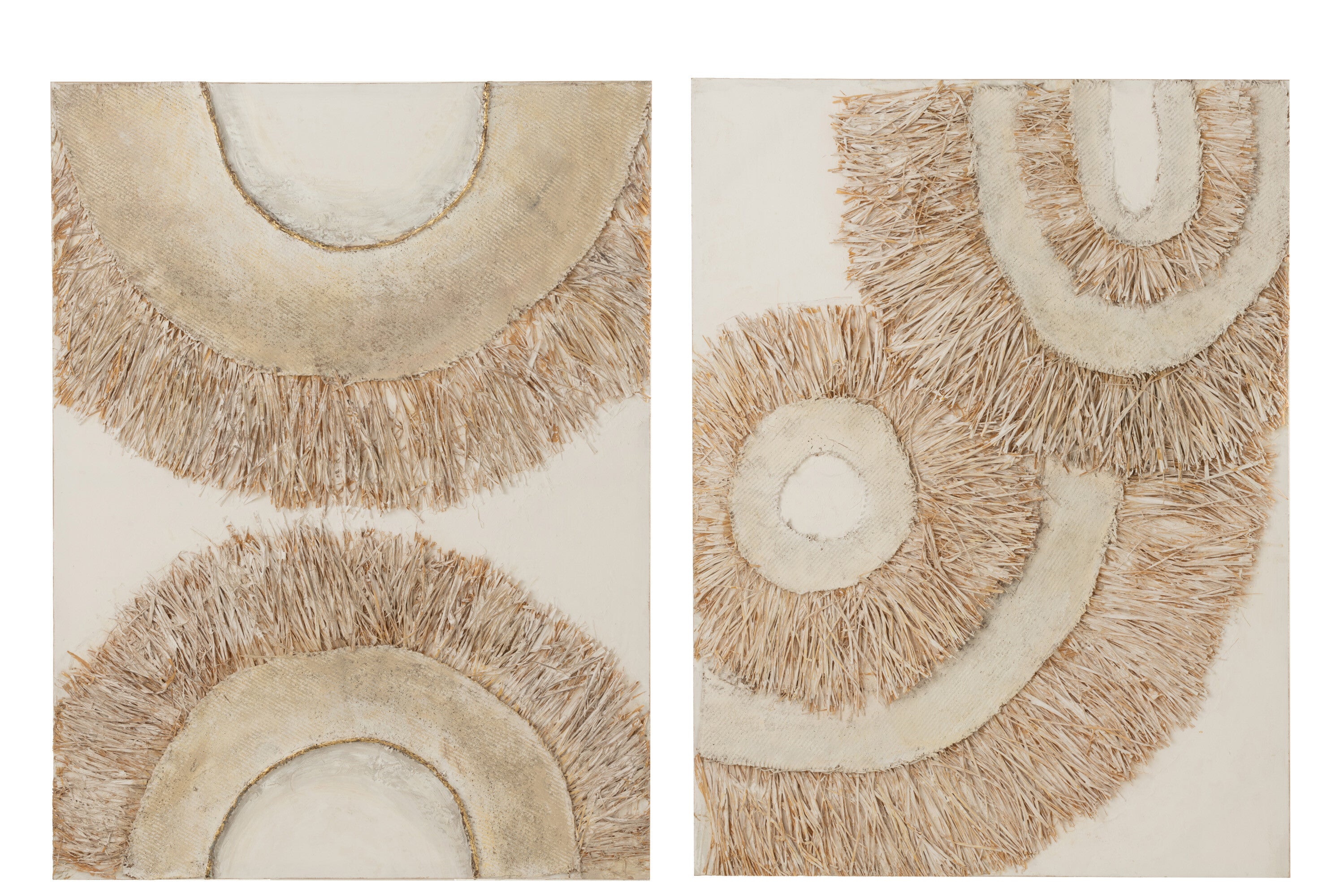 J-Line wanddecoratie Ibiza - canvas|verf - creme|wit - 2 stuks