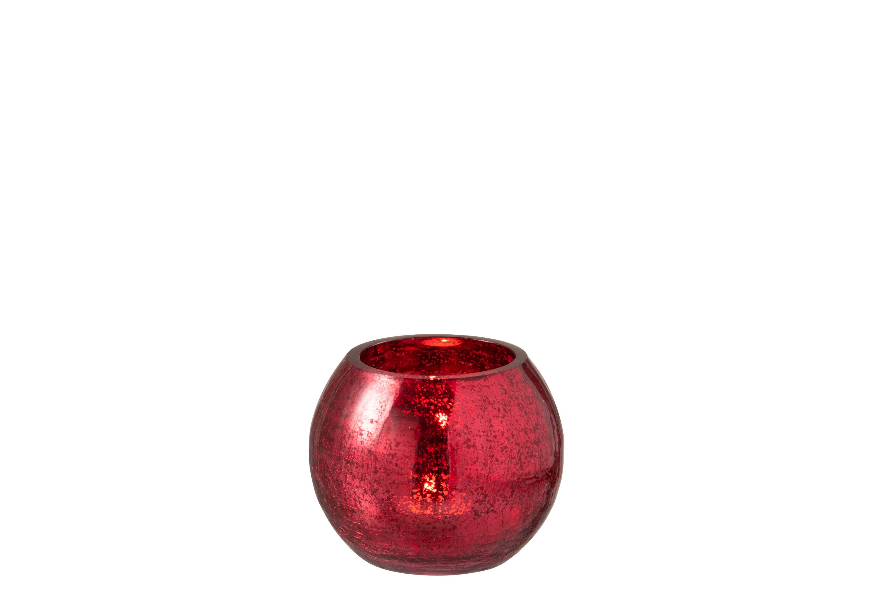 J-Line Windlicht Bol Craquele Glas Blinkend Rood Small