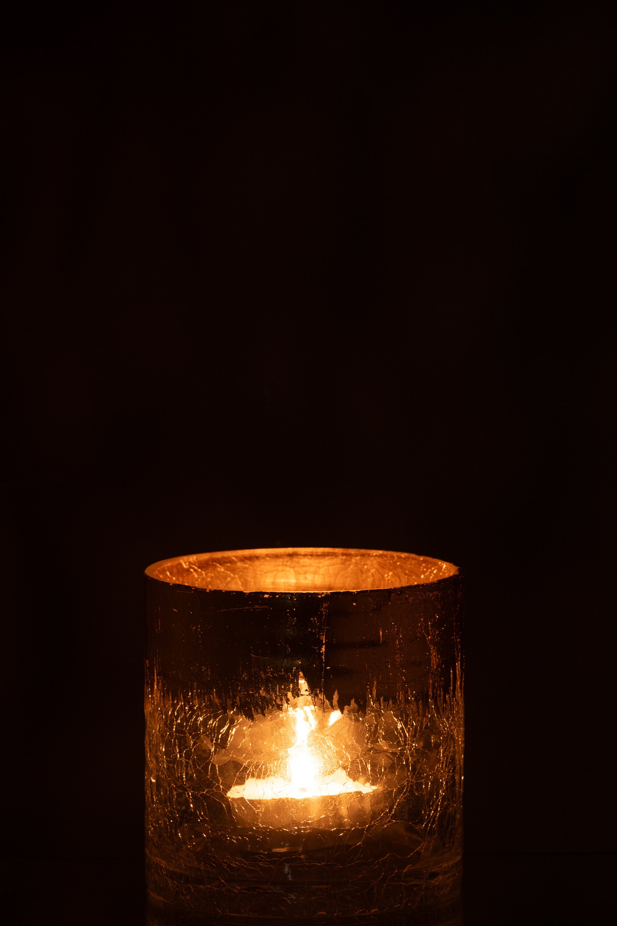 J-Line windlicht crackle - glas - transparant|goud - medium