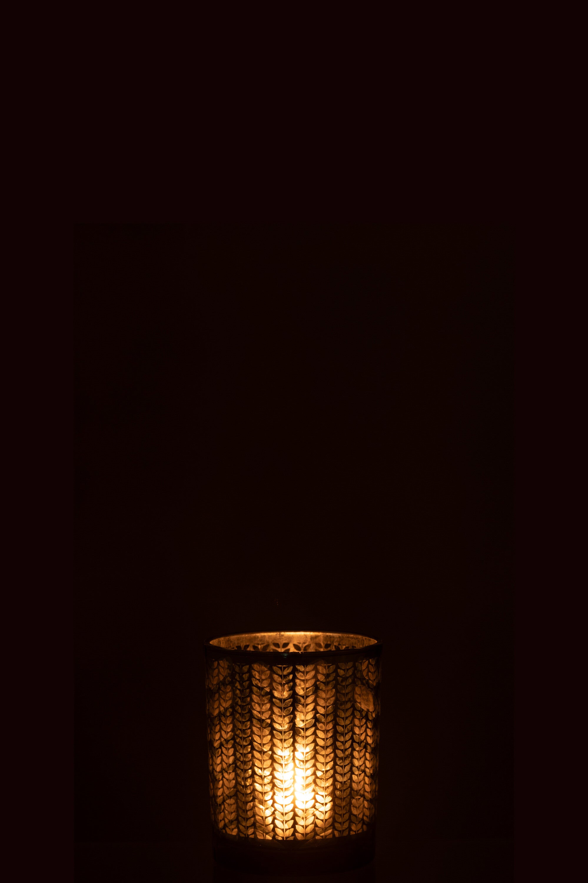 J-Line windlicht Visgraat - glas - groen|zilver - small