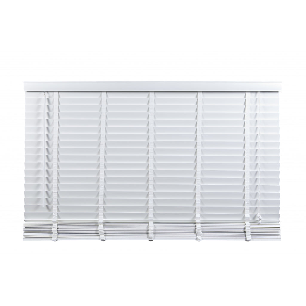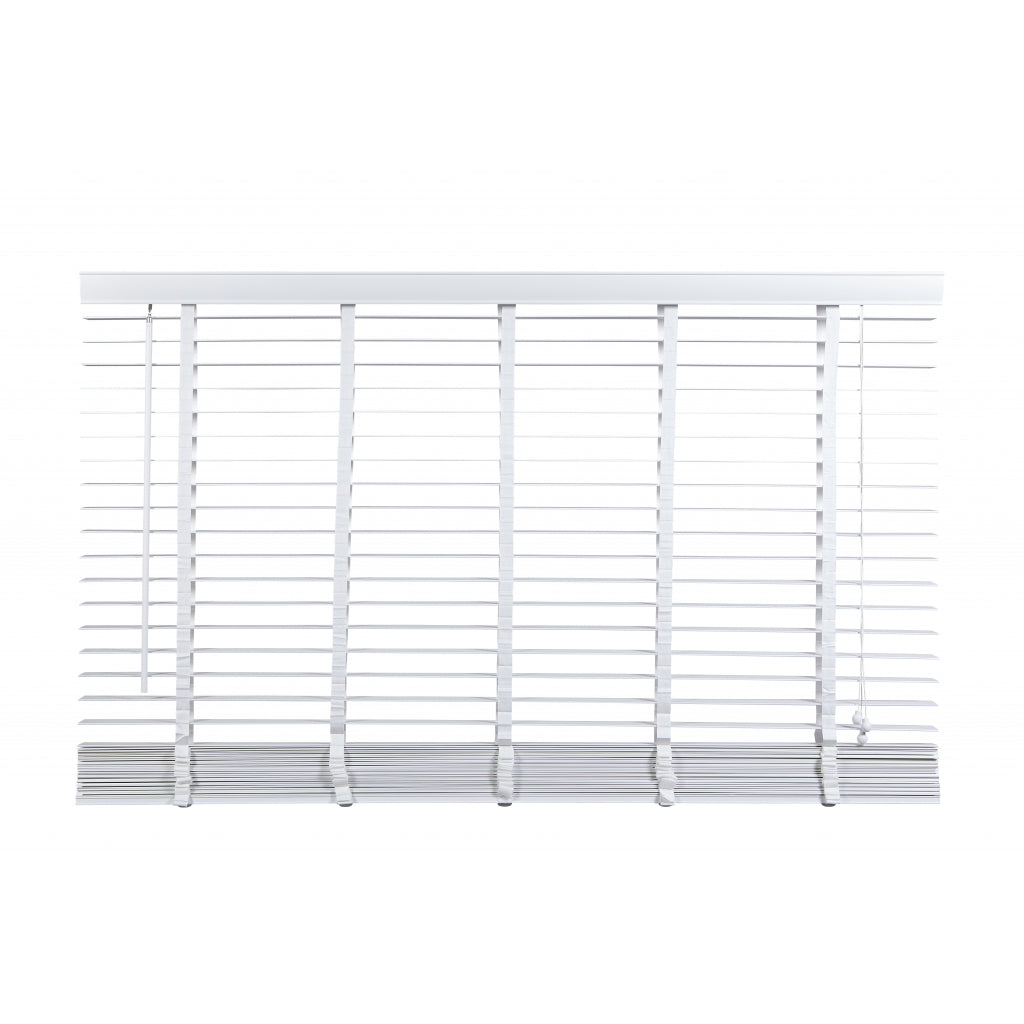 De witte jaloezie van lindehout heeft een egale structuur zonder zichtbare houtnerf. Bovenop bevindt zich een aluminium cassette met een witte afdeklat, voorzien van een luxe profiel voor een verfijnde afwerking. Ook de bedieningskoorden en verticale ladderbanden zijn wit, waardoor de jaloezie volledig in dezelfde witte kleur is uitgevoerd. De ladderbanden, met een breedte van 25 mm, hebben een prachtige geweven structuur. Stylen met een witte houten jaloezie: Een houten jaloezie in het wit brengt een kalme en frisse sfeer in huis. Het witte hout past uitstekend bij een landelijke uitstraling met natuurlijk hout en diverse texturen zoals wol, bouclé en linnen. Ook in een minimalistische Scandinavische stijl voegt een witte jaloezie de perfecte touch toe aan je interieur. Een witte jaloezie op een wit kozijn kan tevens zorgen voor een ideale basislook, vooral als je graag met de trends meegaat en je interieur regelmatig wilt aanpassen. Pluspunten: • Scherpe prijs voor perfecte kwaliteit en afwerking • Op en neer beweging door bedieningskoorden • Draaistang om te kantelen • Ophangsteunen voor eenvoudig montage • Makkelijk in te korten • Leverbaar in veel standaardmaten (60 tot 220 cm breed) • In zwart, wit en 2 trendy hout kleuren leverbaar Minpunten: • Verduistert niet volledig • Niet geschikt voor vochtige ruimtes, zoals een badkamer Welke maat heb ik nodig? Bedenk van tevoren of je de jaloezie "in of op de dag" wilt hangen, dus in of op het kozijn. Wanneer je ze in de dag hangt, heb je geen last van de zijkanten die na het versmallen onafgewerkt zullen zijn. Dat zit dan mooi verborgen. Het voordeel van op de dag monteren is dat het beter verduistert dan in de dag montage. Let op: het inmeten is een secuur klusje. We adviseren om altijd 2x te meten om vergissingen te voorkomen. Montage op de dag (op het plafond of vlak boven het raam) 1. Meet voor de breedte het raam op 3 plaatsen 2. Voeg daar aan beide kanten 5 cm extra aan toe 3. Meet voor de lengte de hoogte tot aan de vensterbank of tot aan de vloer. Houd rekening met de hoogte van het ophangsysteem 4. Trek hier 1 cm vanaf Montage in de dag (tussen de kozijnen) 1. Houd rekening met draaiende en uitstekende delen, zoals hendels en grepen 2. Meet de breedte tussen het kozijn of de muren op 3 plaatsen 3. De breedte is de smalst gemeten maat. Trek hier 1 cm vanaf 4. Meet de lengte tussen het kozijn of muur en de vensterbank op 3 plaatsen 5. De lengte is de kortst gemeten maat. Indien je de jaloezie tot op de vensterbank wilt, trek er dan 1 cm vanaf Eenvoudige montage: 1. Volg eerst bovenstaande stappen voor het correct meten van de juiste maat jaloezie. 2. Meet en teken de plaats af waar de ophangsteunen moeten komen. 3. Zorg dat er genoeg speling is voor wanneer je de cassette met jaloezie in de steunen hangt. 4. Hang de extra beugel ter ondersteuning op, maar niet in het midden. Anders zit deze beugel op dezelfde plek als het ladderband. 5. Hang de jaloezie op door de cassette in de ophangsteunen te hangen en klik deze dicht. 6. Bevestig de ophangbeugels aan de afdeklat en schuif de afdeklat met beugels op de cassette. Je kunt gebruik maken van het dubbelzijdige tape om de afdeklat vast te maken. 7. Indien nodig kun je de lengte van de jaloezie inkorten (zie onderstaande stappen). Lengte jaloezie inkorten: 1. Hang de jaloezie languit naar beneden bij het op maat maken van de lengte. Zo kun je goed bepalen hoeveel lamellen er tussenuit moeten voor de juiste lengte. 2. Aan de onderzijde zitten doppen ter afwerking van het katoenen ladderband en het koord. Deze doppen kun je er makkelijk met je vingers of anders met een platte schroevendraaier uitduwen. 3. Na het weghalen van de doppen worden de knoopjes van de koorden zichtbaar. Het is soms even friemelen, maar haal de knopen los. 4. Nu zie je vaak meteen hoeveel lamellen er tussenuit moeten. Verwijder eerst de onderste, wat bredere, afwerk lamel en daarna het teveel aan lamellen. Schuif de brede afwerklamel weer tussen het ladderband en rijg het koord er doorheen. Maak de knoopjes opnieuw vast. 5. Knip het ladderband op de juiste lengte af. Zorg ervoor dat je dat niet te kort doet. Check onderaan even hoe dat eerder gedaan is en knip op dezelfde wijze het teveel aan band af. Plaats het ladderband met de doppen weer terug in de afwerk lamel, precies zoals het eerst zat. 6. Als finishing touch kun je ook het bedieningskoord op de juiste lengte maken. Duw de houten klosjes omhoog en knoop het koord hoger (op de juiste lengte) weer vast. Knip het overtollige koord aan de onderkant af en duw de klosjes weer terug naar beneden over de knoopjes heen. Nu is de look helemaal af. Onderhoud: Om je houten jaloezie in topvorm te houden is regelmatig onderhoud belangrijk. Om ze snel op te frissen gebruik je een stofdoek, plumeau of de stofzuiger. Draai de jaloezieën dicht en ga er met een stofdoek of plumeau overheen. Het kan ook met de stofzuiger, zet ‘m dan wel op de laagste stand en gebruik een kleine opzetborstel. Voor een wat diepere reiniging kun je de lamellen afnemen met een licht vochtige doek en een zacht reinigingsmiddel.| Afmetingen | |