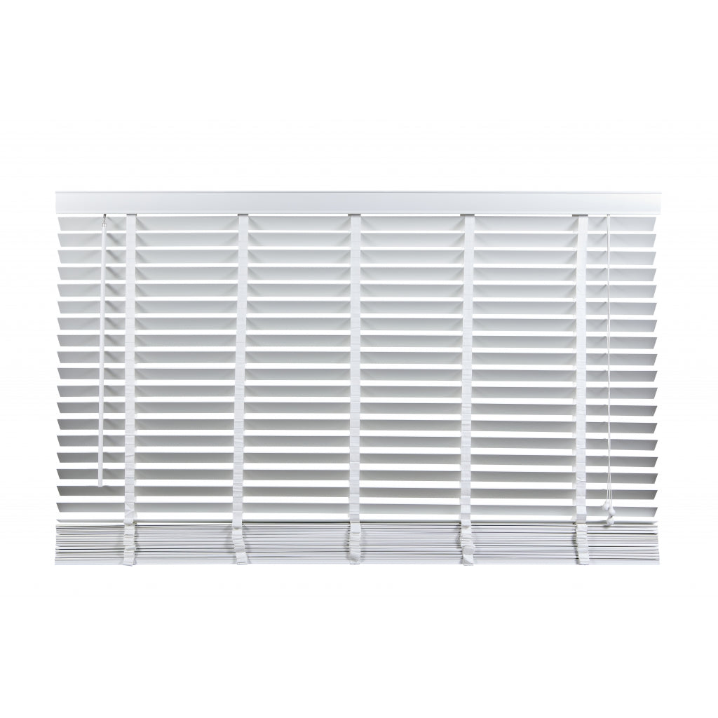 De witte jaloezie van lindehout heeft een egale structuur zonder zichtbare houtnerf. Bovenop bevindt zich een aluminium cassette met een witte afdeklat, voorzien van een luxe profiel voor een verfijnde afwerking. Ook de bedieningskoorden en verticale ladderbanden zijn wit, waardoor de jaloezie volledig in dezelfde witte kleur is uitgevoerd. De ladderbanden, met een breedte van 25 mm, hebben een prachtige geweven structuur. Stylen met een witte houten jaloezie: Een houten jaloezie in het wit brengt een kalme en frisse sfeer in huis. Het witte hout past uitstekend bij een landelijke uitstraling met natuurlijk hout en diverse texturen zoals wol, bouclé en linnen. Ook in een minimalistische Scandinavische stijl voegt een witte jaloezie de perfecte touch toe aan je interieur. Een witte jaloezie op een wit kozijn kan tevens zorgen voor een ideale basislook, vooral als je graag met de trends meegaat en je interieur regelmatig wilt aanpassen. Pluspunten: • Scherpe prijs voor perfecte kwaliteit en afwerking • Op en neer beweging door bedieningskoorden • Draaistang om te kantelen • Ophangsteunen voor eenvoudig montage • Makkelijk in te korten • Leverbaar in veel standaardmaten (60 tot 220 cm breed) • In zwart, wit en 2 trendy hout kleuren leverbaar Minpunten: • Verduistert niet volledig • Niet geschikt voor vochtige ruimtes, zoals een badkamer Welke maat heb ik nodig? Bedenk van tevoren of je de jaloezie "in of op de dag" wilt hangen, dus in of op het kozijn. Wanneer je ze in de dag hangt, heb je geen last van de zijkanten die na het versmallen onafgewerkt zullen zijn. Dat zit dan mooi verborgen. Het voordeel van op de dag monteren is dat het beter verduistert dan in de dag montage. Let op: het inmeten is een secuur klusje. We adviseren om altijd 2x te meten om vergissingen te voorkomen. Montage op de dag (op het plafond of vlak boven het raam) 1. Meet voor de breedte het raam op 3 plaatsen 2. Voeg daar aan beide kanten 5 cm extra aan toe 3. Meet voor de lengte de hoogte tot aan de vensterbank of tot aan de vloer. Houd rekening met de hoogte van het ophangsysteem 4. Trek hier 1 cm vanaf Montage in de dag (tussen de kozijnen) 1. Houd rekening met draaiende en uitstekende delen, zoals hendels en grepen 2. Meet de breedte tussen het kozijn of de muren op 3 plaatsen 3. De breedte is de smalst gemeten maat. Trek hier 1 cm vanaf 4. Meet de lengte tussen het kozijn of muur en de vensterbank op 3 plaatsen 5. De lengte is de kortst gemeten maat. Indien je de jaloezie tot op de vensterbank wilt, trek er dan 1 cm vanaf Eenvoudige montage: 1. Volg eerst bovenstaande stappen voor het correct meten van de juiste maat jaloezie. 2. Meet en teken de plaats af waar de ophangsteunen moeten komen. 3. Zorg dat er genoeg speling is voor wanneer je de cassette met jaloezie in de steunen hangt. 4. Hang de extra beugel ter ondersteuning op, maar niet in het midden. Anders zit deze beugel op dezelfde plek als het ladderband. 5. Hang de jaloezie op door de cassette in de ophangsteunen te hangen en klik deze dicht. 6. Bevestig de ophangbeugels aan de afdeklat en schuif de afdeklat met beugels op de cassette. Je kunt gebruik maken van het dubbelzijdige tape om de afdeklat vast te maken. 7. Indien nodig kun je de lengte van de jaloezie inkorten (zie onderstaande stappen). Lengte jaloezie inkorten: 1. Hang de jaloezie languit naar beneden bij het op maat maken van de lengte. Zo kun je goed bepalen hoeveel lamellen er tussenuit moeten voor de juiste lengte. 2. Aan de onderzijde zitten doppen ter afwerking van het katoenen ladderband en het koord. Deze doppen kun je er makkelijk met je vingers of anders met een platte schroevendraaier uitduwen. 3. Na het weghalen van de doppen worden de knoopjes van de koorden zichtbaar. Het is soms even friemelen, maar haal de knopen los. 4. Nu zie je vaak meteen hoeveel lamellen er tussenuit moeten. Verwijder eerst de onderste, wat bredere, afwerk lamel en daarna het teveel aan lamellen. Schuif de brede afwerklamel weer tussen het ladderband en rijg het koord er doorheen. Maak de knoopjes opnieuw vast. 5. Knip het ladderband op de juiste lengte af. Zorg ervoor dat je dat niet te kort doet. Check onderaan even hoe dat eerder gedaan is en knip op dezelfde wijze het teveel aan band af. Plaats het ladderband met de doppen weer terug in de afwerk lamel, precies zoals het eerst zat. 6. Als finishing touch kun je ook het bedieningskoord op de juiste lengte maken. Duw de houten klosjes omhoog en knoop het koord hoger (op de juiste lengte) weer vast. Knip het overtollige koord aan de onderkant af en duw de klosjes weer terug naar beneden over de knoopjes heen. Nu is de look helemaal af. Onderhoud: Om je houten jaloezie in topvorm te houden is regelmatig onderhoud belangrijk. Om ze snel op te frissen gebruik je een stofdoek, plumeau of de stofzuiger. Draai de jaloezieën dicht en ga er met een stofdoek of plumeau overheen. Het kan ook met de stofzuiger, zet ‘m dan wel op de laagste stand en gebruik een kleine opzetborstel. Voor een wat diepere reiniging kun je de lamellen afnemen met een licht vochtige doek en een zacht reinigingsmiddel.| Afmetingen | |